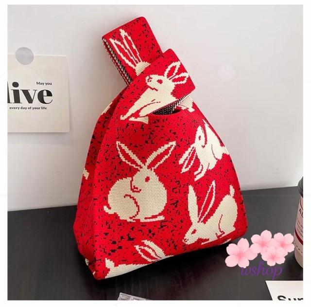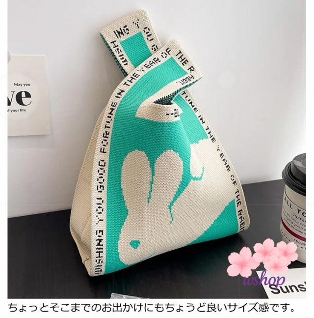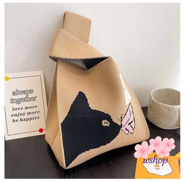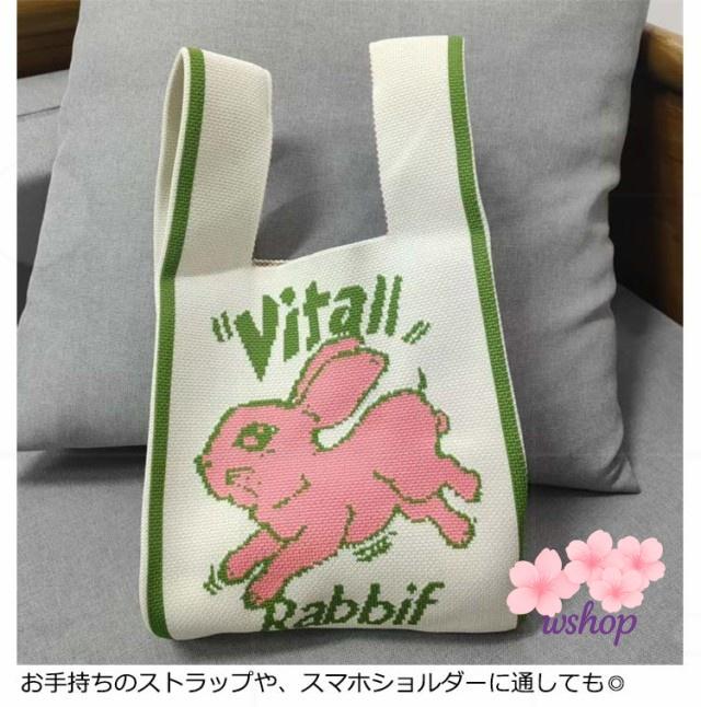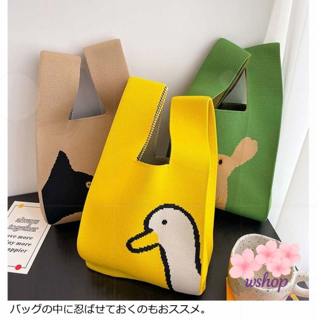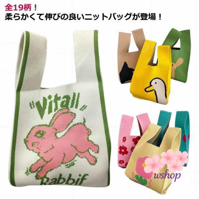 【wshop】ニット ウサギ 可愛い ギフト マルシェバッグ トートバッグ 送料無料 手提げバッグ かわいい コンパクト ミニバッグ 手提げ袋 ヒョウ柄 おしゃれ 縦型 バッグ 大容量 軽量 20*35cm ニット 猫 全19柄 プレゼント エコバッグ ニットバッグ ストライプ