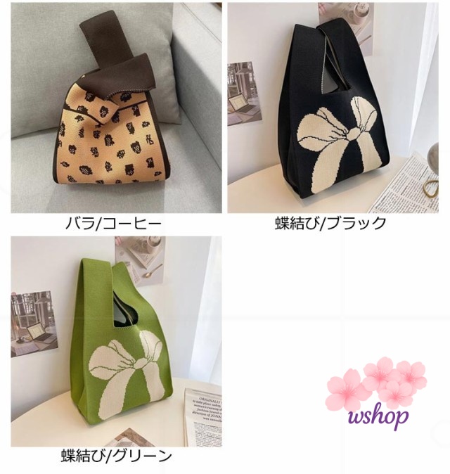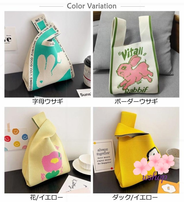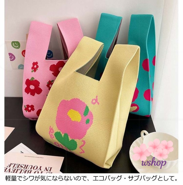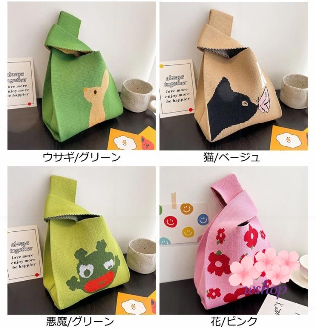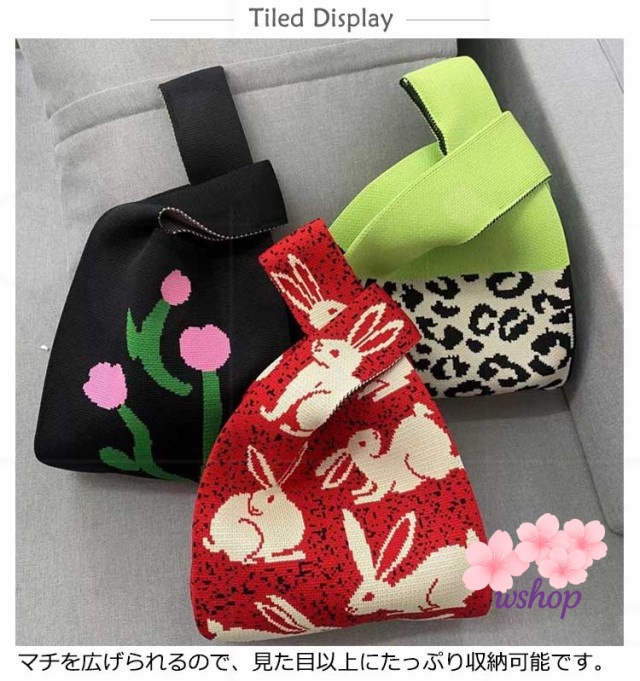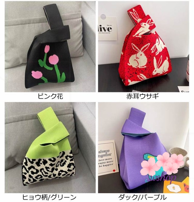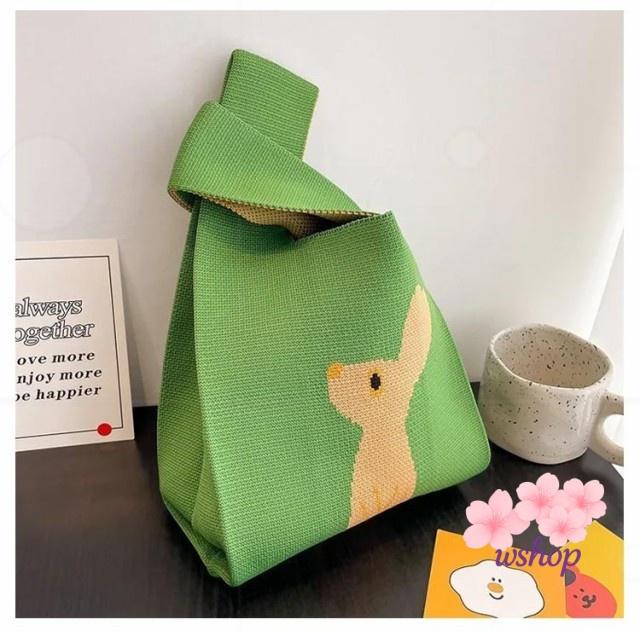 ニット バッグ エコバッグ コンパクト 大容量 手提げバッグ 手提げ袋 ニットバッグ マルシェバッグ かわいい ニット トートバッグ 縦型 軽量 ウサギ 猫 ヒョウ柄 20*35cm おしゃれ ミニバッグ ストライプ 全19柄 可愛い ギフト プレゼント 送料無料