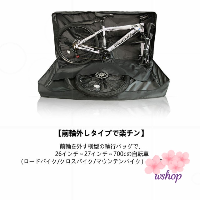 【wshop】ホイールポケット付き キャリーバッグ 27インチ 厚手 前輪のみ外す 輪行ケース 700c以下 クロスバイク 防水 輪行バッグ マウンテンバイク 輪行袋 仕切り付き ロードバイク 横向き 26インチ サイクリング 軽量 自転車バッグ