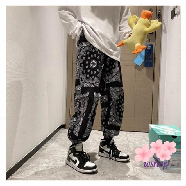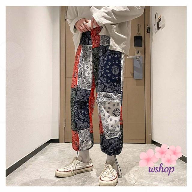 【wshop】総柄 ロングパンツ メンズ 春秋 メンズ ストレートパンツ ワイドパンツ 春秋 テーパードパンツ ペーズリー 冬 サルエルパンツ バンダナ バギーパンツ 柄パンツ ペイズリー柄パンツ