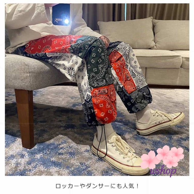 | 海外ストリートで人気のペイズリーをあしらったバンダナ柄デザインのパンツ。 ロッカーやダンサーにも人気! 個性的でポップでアートなデザインです。 お気に入りを探してください! | |