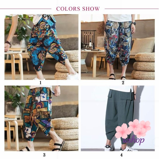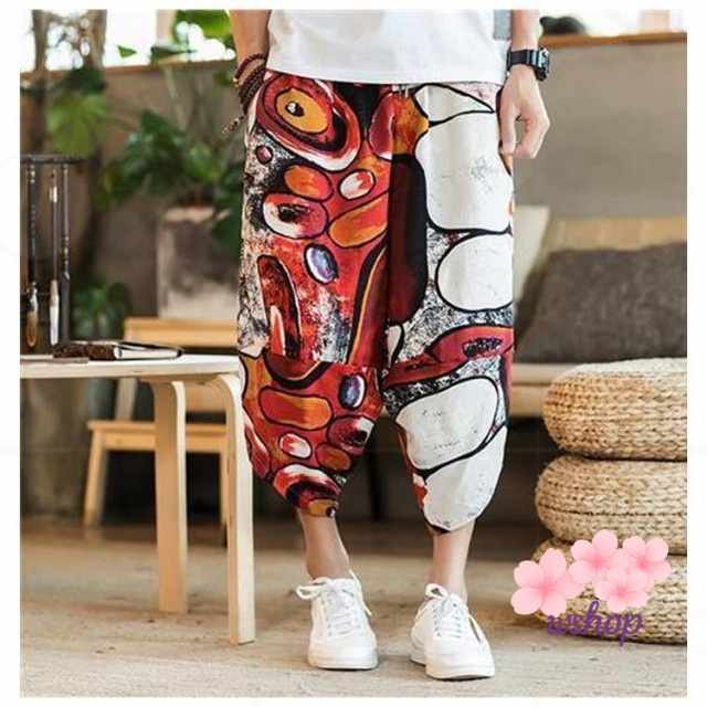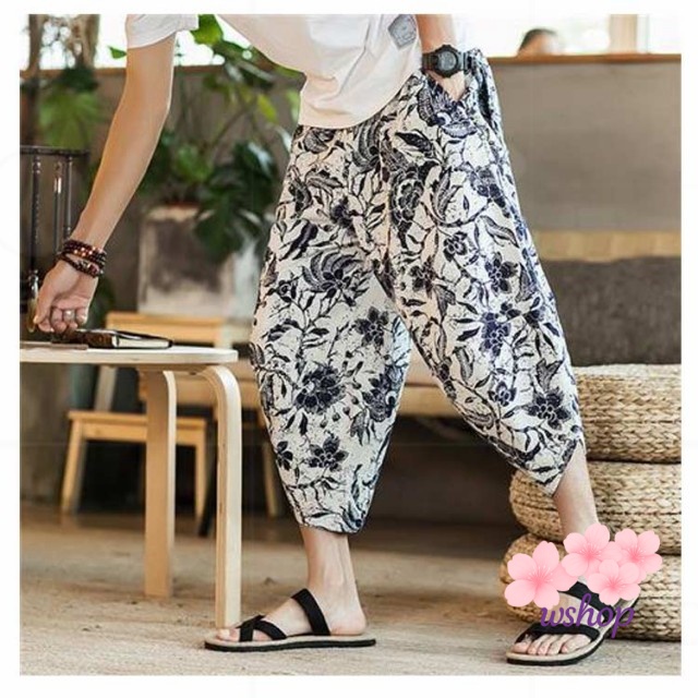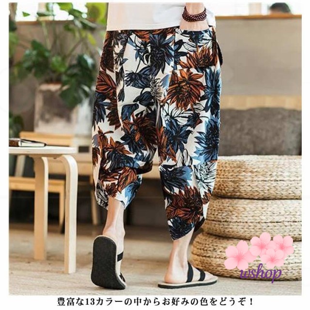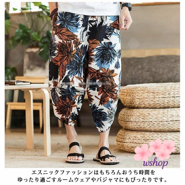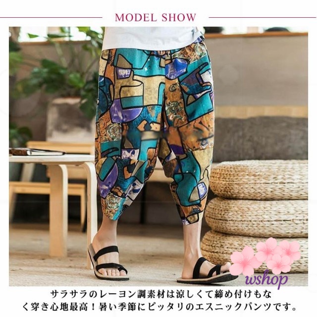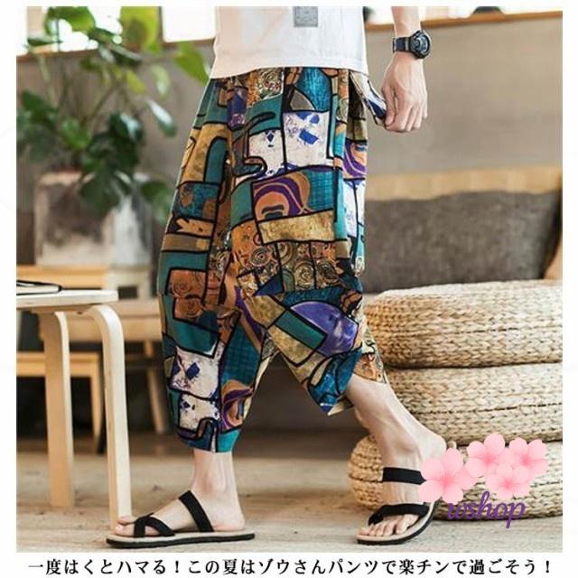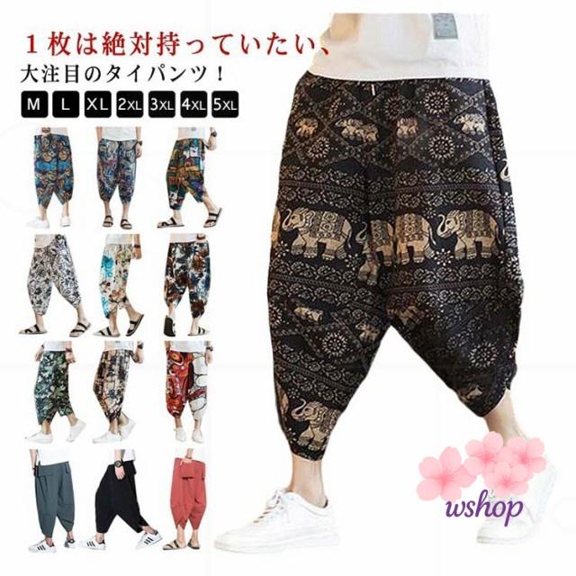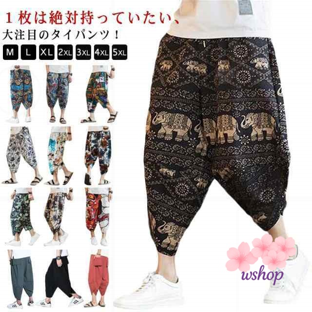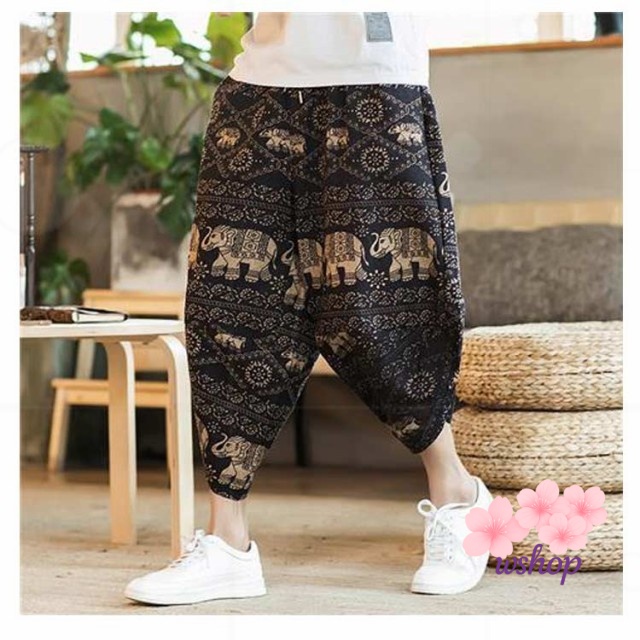 サルエル サルエルパンツ タイパンツ メンズ 大きいサイズ ぞう ジョガーパンツ ゾウ 7分丈 象柄 ルームウェア 薄手 部屋着 接触冷感 パンツ ワイド ゆったり ゴムウエスト クロップドパンツ 冷感パンツ 涼しい タイパンツ 春 夏 ズボン おしゃれ カジュアル