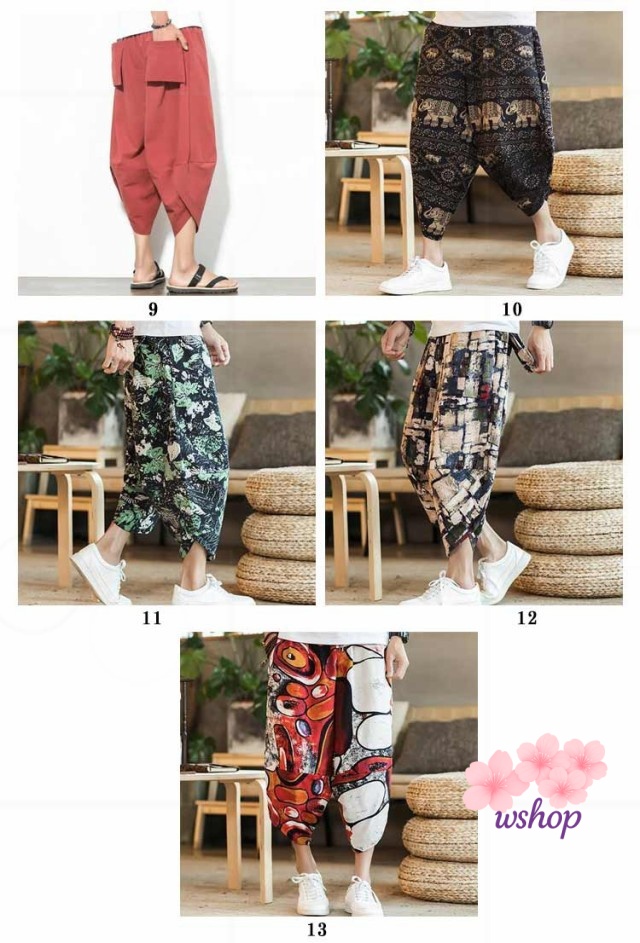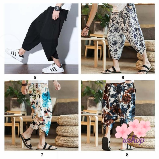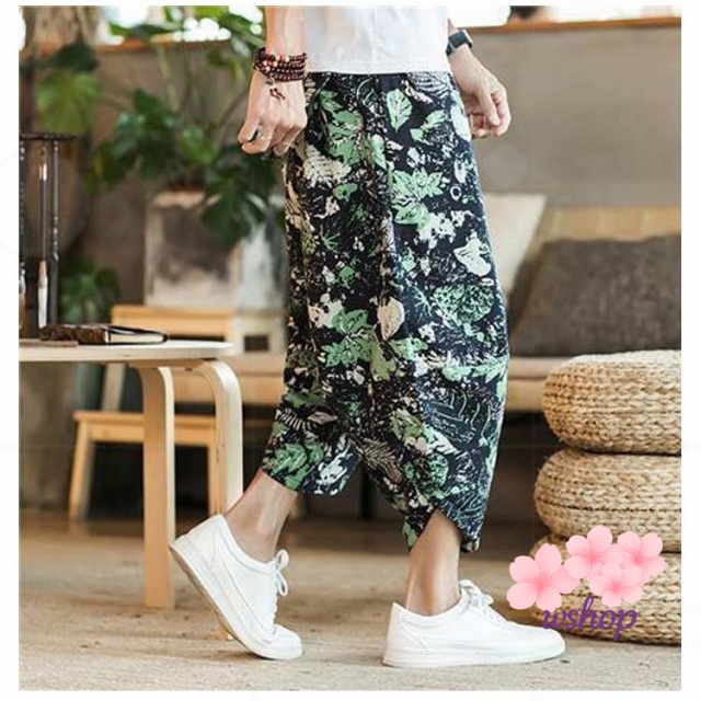 【wshop】7分丈 ワイド タイパンツ 涼しい タイパンツ ゴムウエスト ルームウェア 夏 ゾウ サルエルパンツ おしゃれ ゆったり 大きいサイズ メンズ 象柄 冷感パンツ クロップドパンツ 春 カジュアル ジョガーパンツ 接触冷感 サルエル 薄手 パンツ ズボン 部屋着 ぞう
