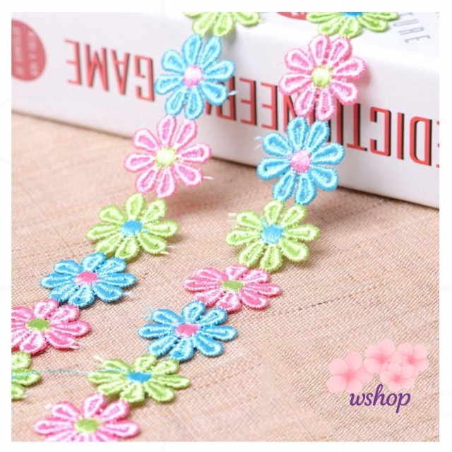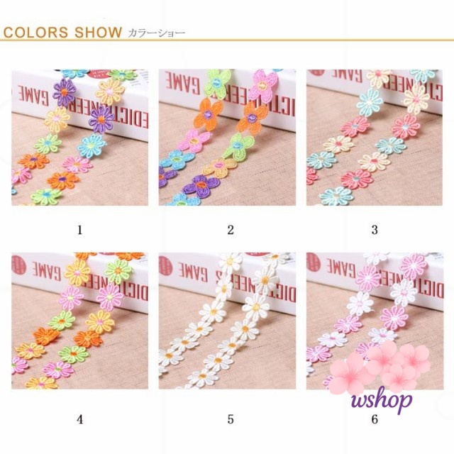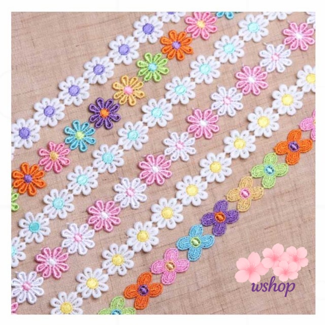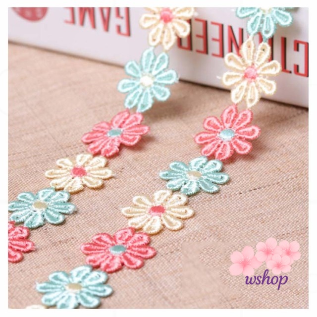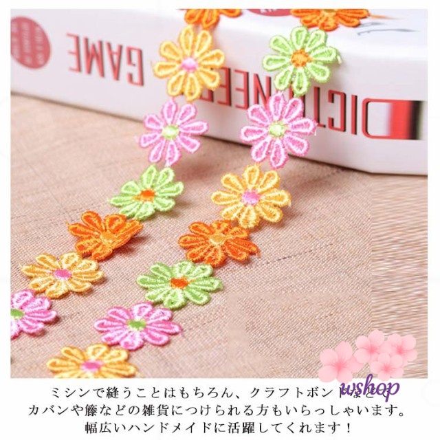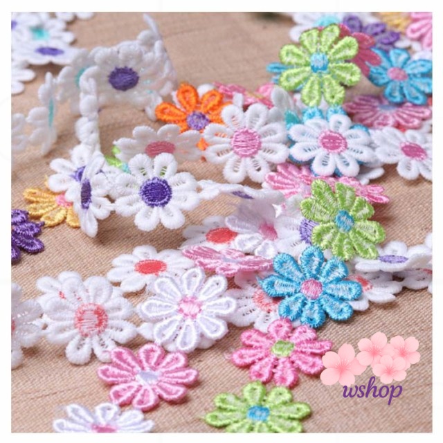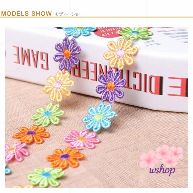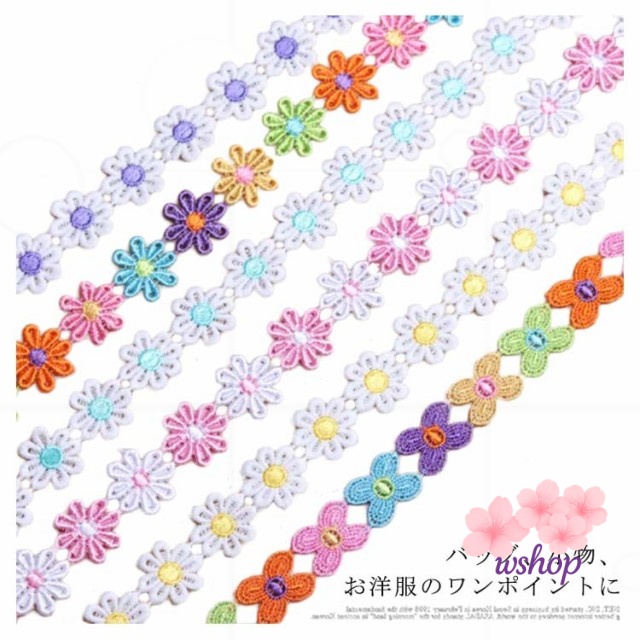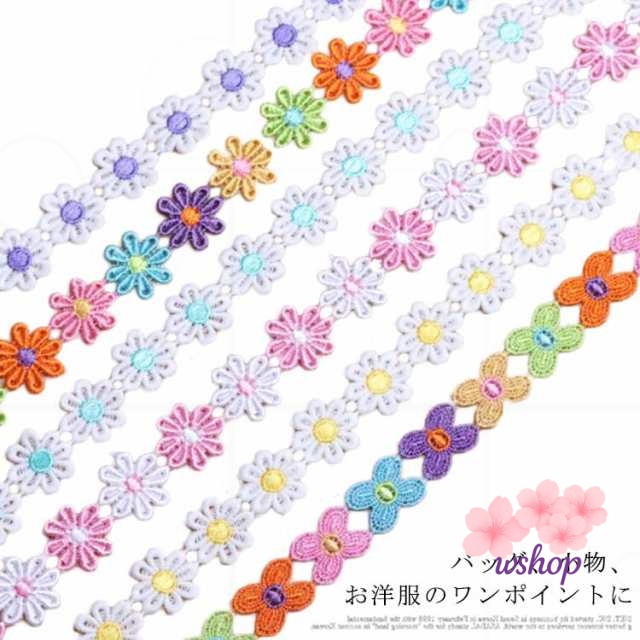 【wshop】手作り 植物 子供 カート可能 ボタニカル 手芸 フラワー 装飾 レースモチーフ ミックスカラー 和洋裁 花びら お人形服 お花 入学バッグ 総レース ハンドメイド 工作 ハンドメイド資材 入園バッグ 長さ1m リボン カラフル 小物 お洋服 バッグ ケミカルレース 髪飾り