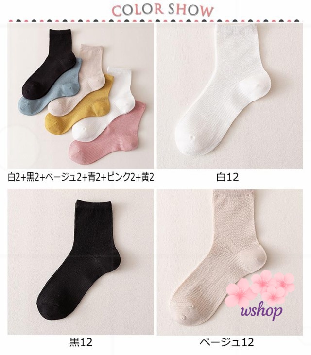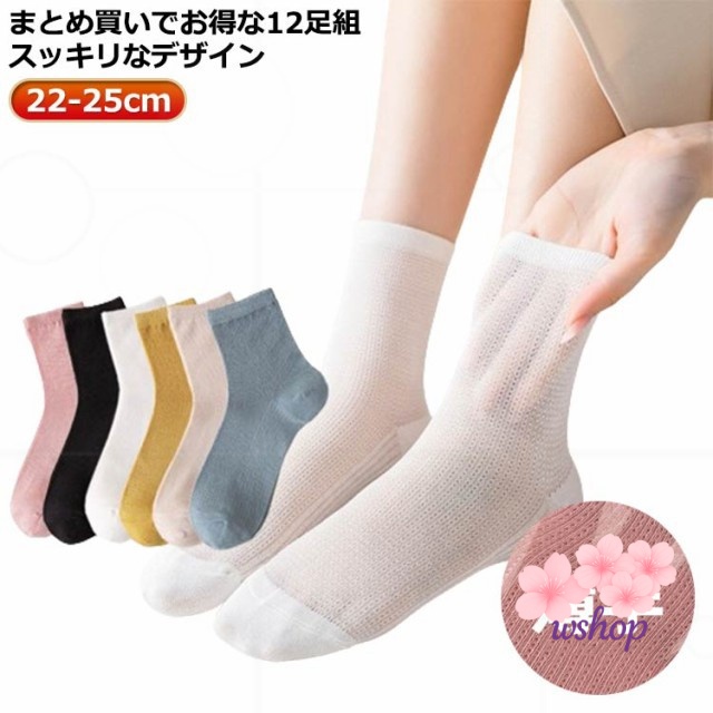 【wshop】綿混素材 蒸れない フリーサイズ 春夏 パステルカラー 靴下 春秋 12足入り 婦人 長め丈 くつした ミディアム丈 クルー丈 涼しい 通気性 カジュアル 夏用 手編み風 レディース さわやか 吸水性 ソックス 薄手メッシュ おしゃれ 女性 無地 シンプル ずれにくい