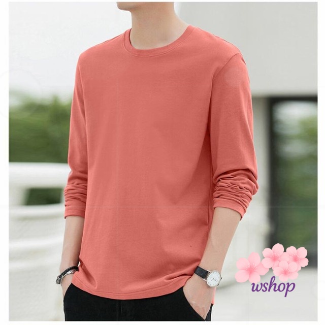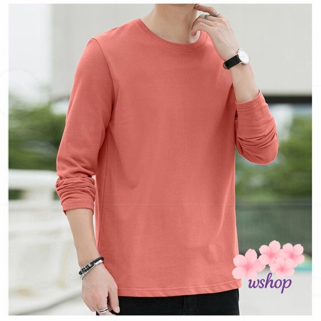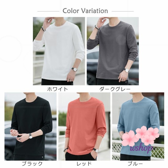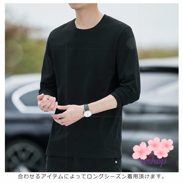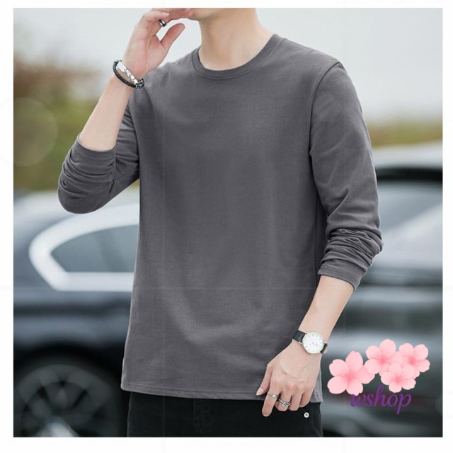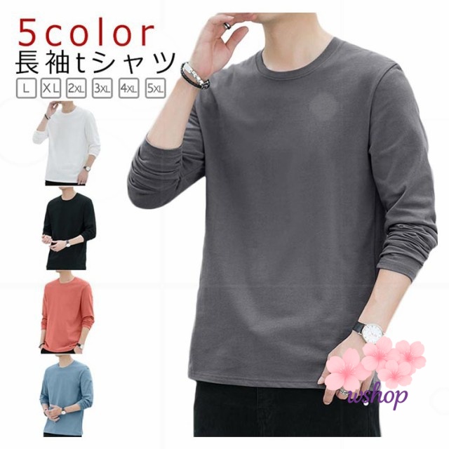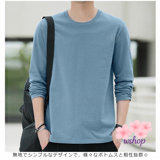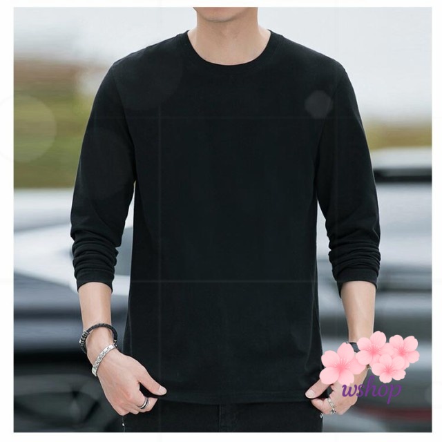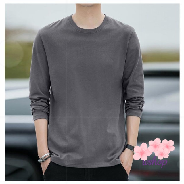 【wshop】ゆったり 送料無料 長袖 無地 カットソー クルーネック ロンT tシャツ 丸首 ロングtシャツ 重ね着 秋物 メンズ 秋 大きいサイズ トップス シンプル 秋服 春 無地 シンプル Tシャツ 秋冬 秋 インナーtシャツ