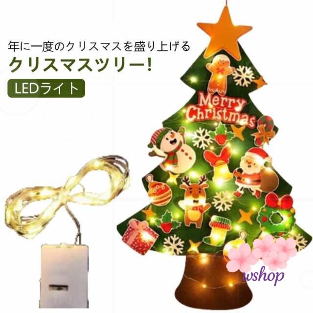 生活快適特集 店長太鼓判 飾り 電飾 【wshop】インテリア オーナメント キット LEDライト ツリー 壁掛け 布 知育 DIY フェルト 送料無料 クリスマス 場所をとらない 軽量仕様 セット クリスマスツリー 壁 タペストリー LED ランキング常連 飾り付け ライト お買い得プライス