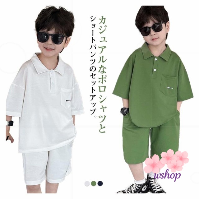 【wshop】ジュニア ハーフパンツ カジュアル 女の子 夏 男の子 結婚式 フォーマル 上下セット 半袖 140 170 ポロシャツ 160 130 90 子供服 子供スーツ 100 キッズ ベビー服 セットアップ キッズ 2点セット オシャレ 120 入学式 洋服 春 110 シャツ 150 半ズボン