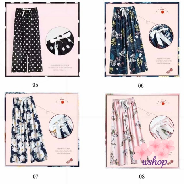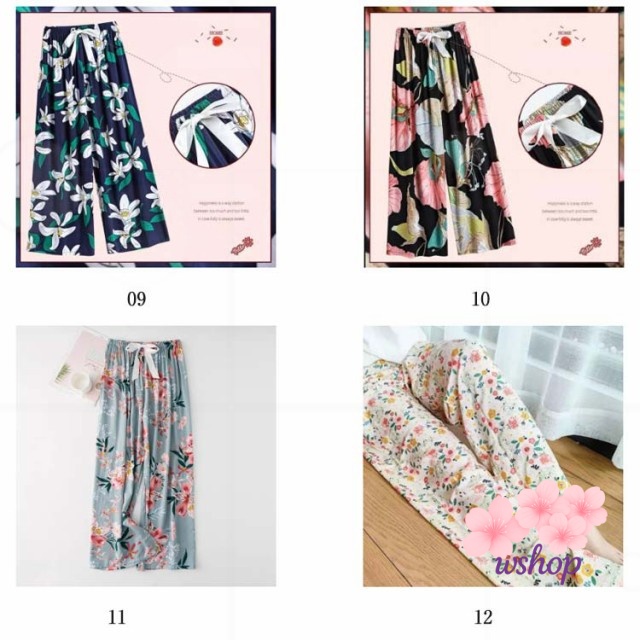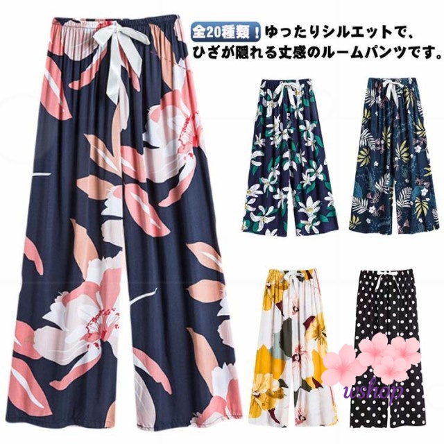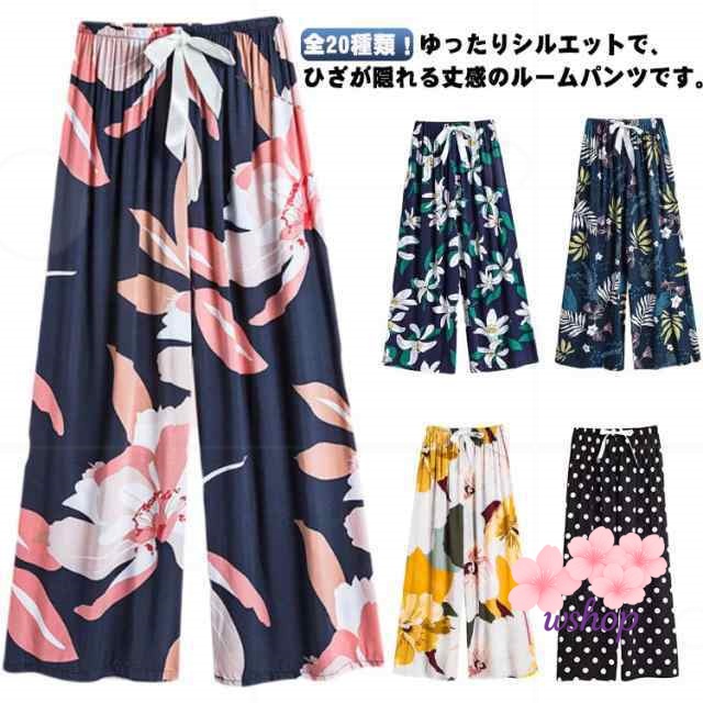 【wshop】涼しい 夏パンツ 9分丈 おしゃれ とろみ パジャマ 九分丈 総柄 ワイドパンツ 薄手 全20種類 ロングパンツ かわいい 花柄 サラテロパンツ 婦人 ステテコ 春 全20種類 レディース 秋 リラックスパンツ ルームパンツ ゆったり 夏