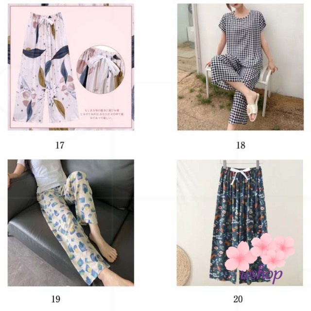 | 全20種類!ゆったりシルエットで、ひざが隠れる丈感のルームパンツです。 春秋はもちろん、夏用のパジャマとしても活躍してくれます。 リラックスタイムにぴったり♪ 通気性がよく涼しい。女性らしいカラフルなカラーと柄がオシャレ。 | |