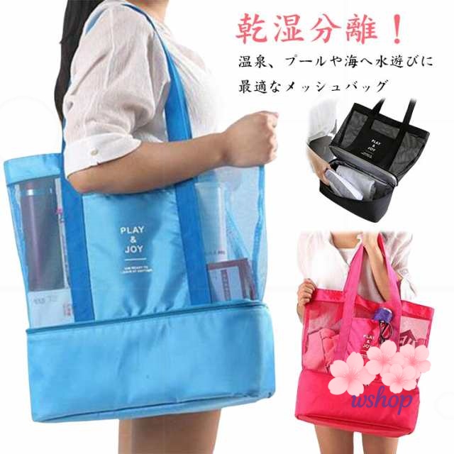【wshop】メッシュバッグ 防水 ギフト プールバッグ おしゃれ 二層式 水遊び ジムバッグ 大人用 手提げ ビーチバッグ トートバッグ 大容量 おしゃれ 水泳 中学生 軽い 乾湿分離 レディース メンズ ショルダー 水切り 温泉バッグ 小学生 スイミング 肩掛け 子供用 バッグ