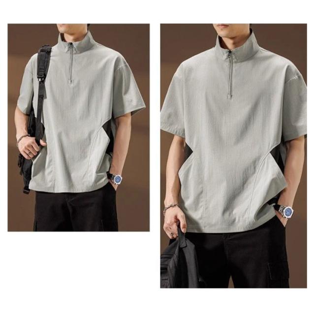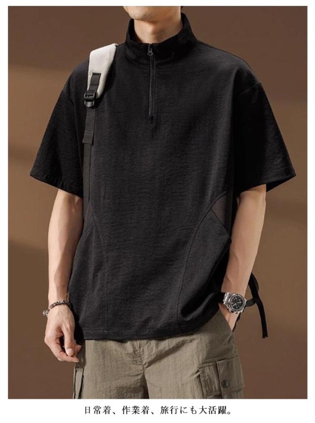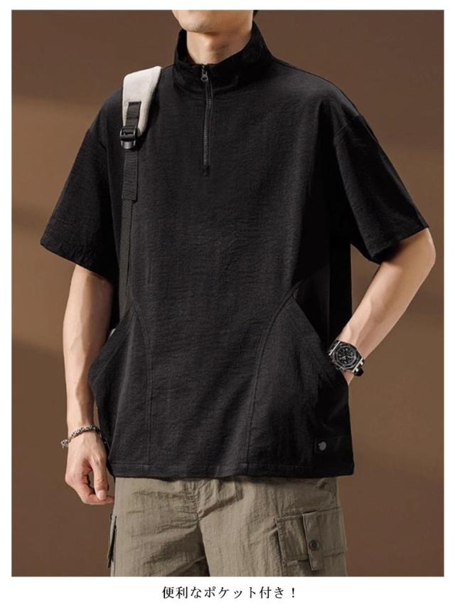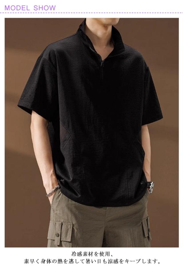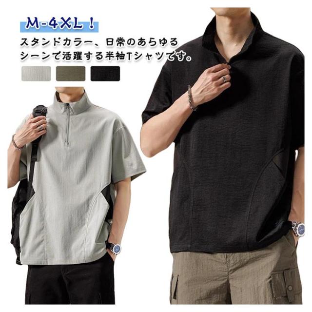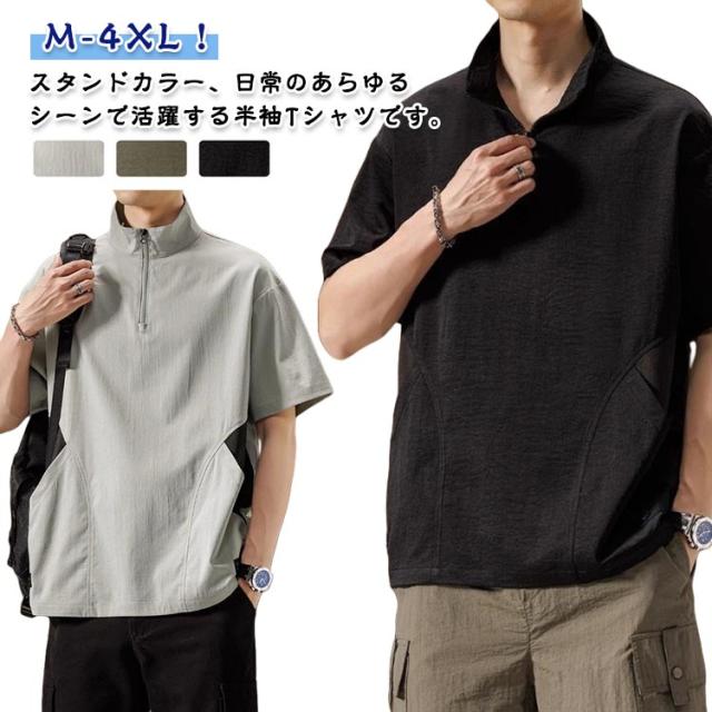 スタンドカラー Tシャツ メンズ 冷感 半袖 春夏 半袖Tシャツ 大きいサイズ 薄手 接触冷感 速乾Tシャツ 立ち襟 ハーフジップ ポケット付き ティーシャツ アメカジ カジュアル M L XL 2XL 3XL 4XL