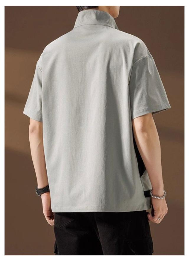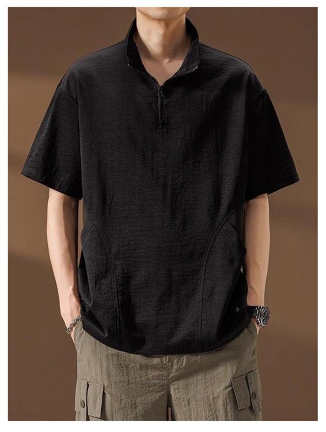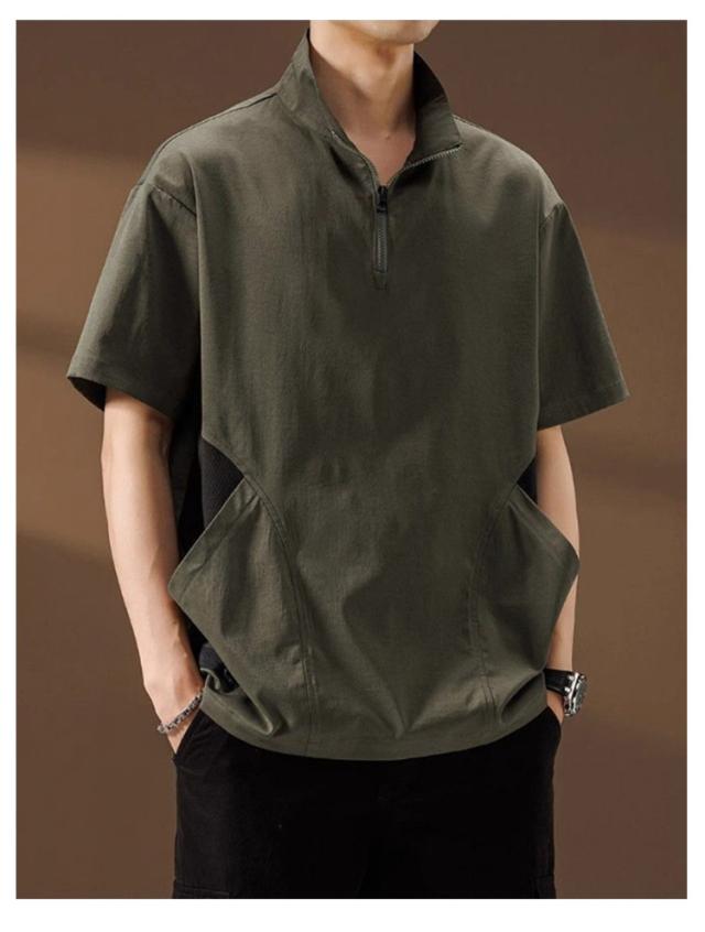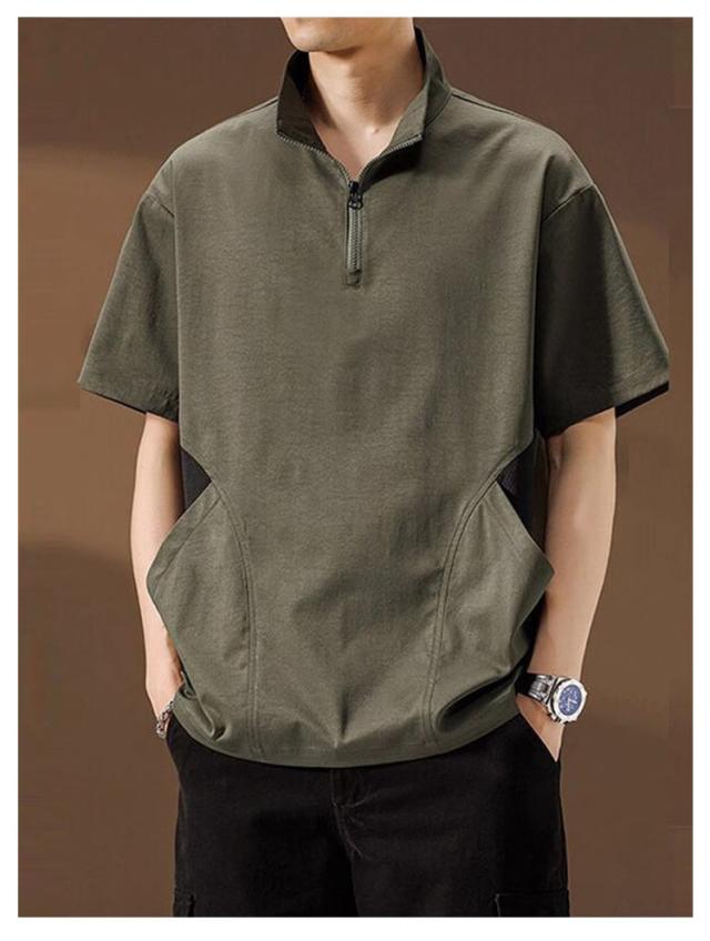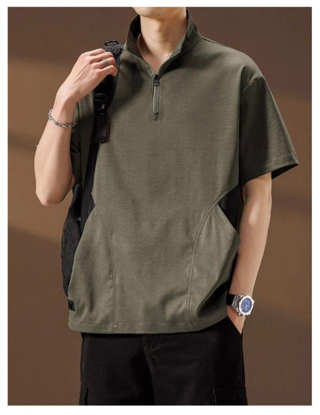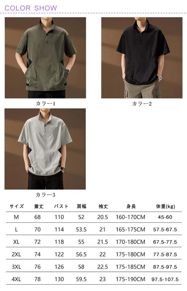 スタンドカラー Tシャツ メンズ 冷感 半袖 春夏 半袖Tシャツ 大きいサイズ 薄手 接触冷感 速乾Tシャツ 立ち襟 ハーフジップ ポケット付き ティーシャツ アメカジ カジュアル M L XL 2XL 3XL 4XL