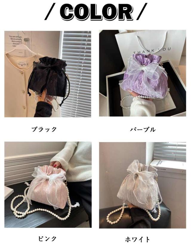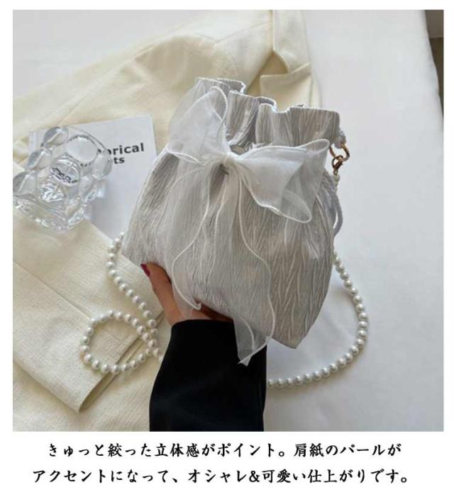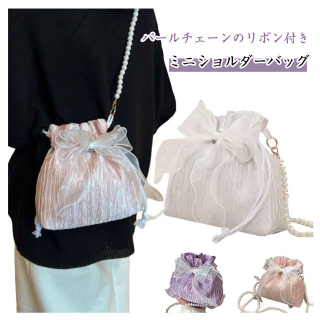 巾着バッグ 浴衣バッグ 斜め掛け リボン レディース バッグ 大人 かわいい ショルダーバッグ ミニショルダーバッグ プレゼント パール 軽量 かばん ミニバッグ レース 高見え 小さめ きれいめ カジュアル おしゃれ 黒 白 ピンク 可愛い ギフト
