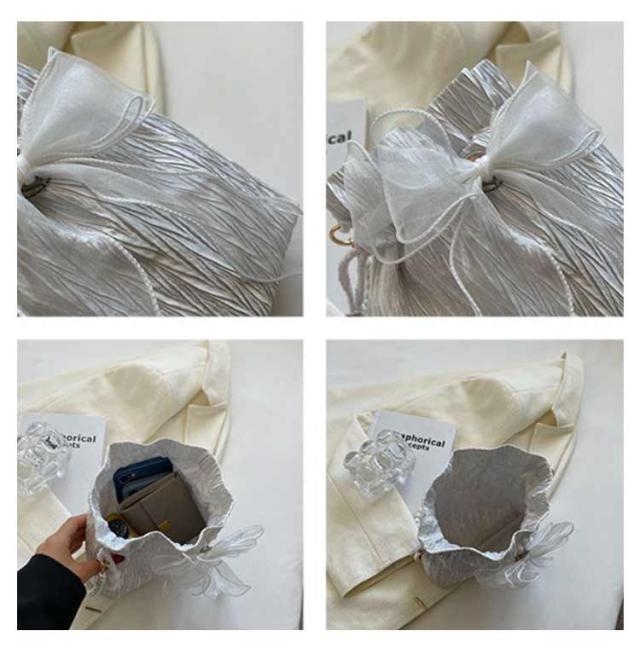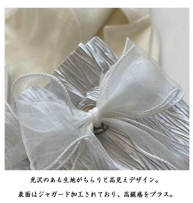 | パールチェーンのリボン付きミニショルダーバッグ きゅっと絞った立体感がポイント。肩紙のパールがアクセントになって、オシャレ&可愛い仕上がりです。 肩掛けや斜め掛けでもお使いいただけるショルダーストラップ付き。 大きく開く開閉口で、荷物の出し入れもスムーズ。 光沢のある生地がちらりと高見えデザイン。 表面はジャガード加工されており、高級感をプラス。 パールショルダーストラップ。ショルダーが取り外し可能デザイン派手すぎず、大人が可愛いのデザインと斜めがけに丁度いい長さ。軽量なので日常使いにもオススメです。 普段使いはもちろん巾着持ちで浴衣コーデにも! | |