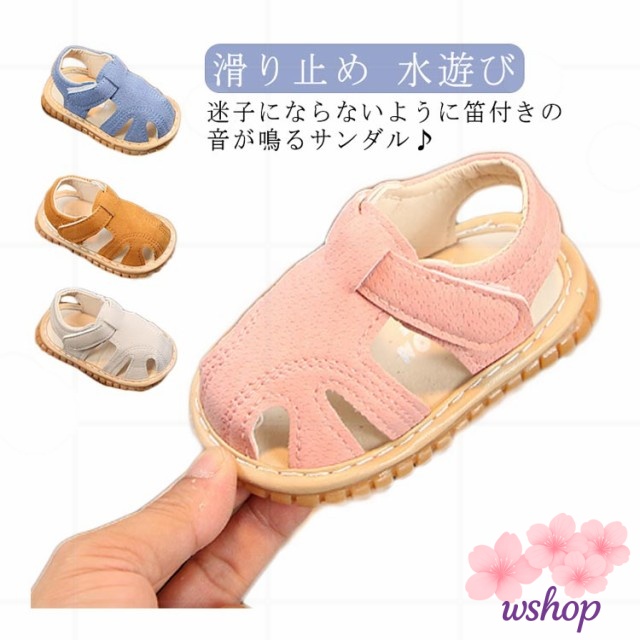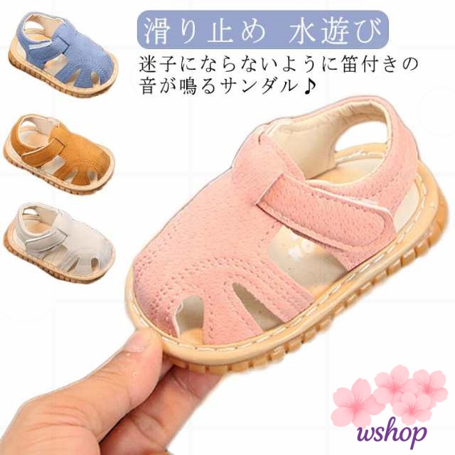 【wshop】子供靴 春夏 ベビーサンダル 笛付き 男の子 赤ちゃん 音が鳴る 滑り止め 水遊び ベビーシューズ 送料無料 ベビーサンダル つま先保護 女の子 マジックテープ