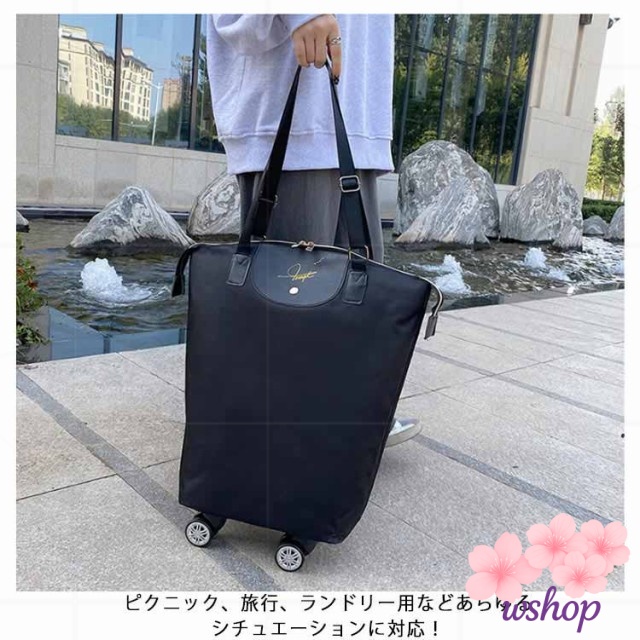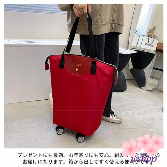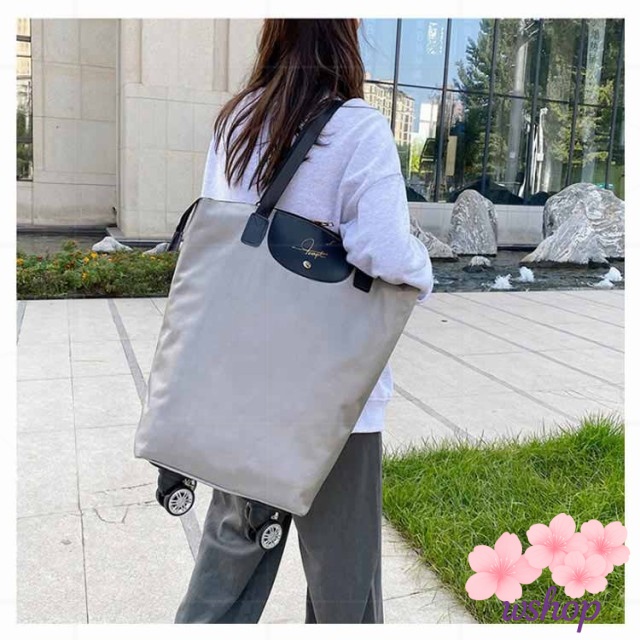 | 4輪タイプで安定感抜群です。 機内持ち込みも可能サイズ。 トートバッグをそのままキャリーカートに乗せた様で、 シンプルにおしゃれに決まる折り畳み式ショッピングカート。 使わない時折りたたんでコンパクトに収納可能。 撥水オックスフォード製なので、丈夫で撥水効果も◎。 後ろポケットもしっかり付いているので、ちょっとした時に取り出したい旅のパンフレットや資料なども気軽に入れられます。 プレゼントにも最適。お年寄りにも安心。組み立てた状態でのお届けになります。箱から出してすぐ使える便利さです。 ピクニック、旅行、ランドリー用などあらゆるシチュエーションに対応! | |