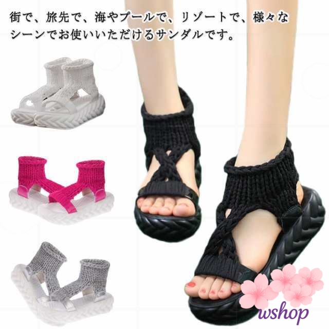 軽量仕様 ランキング常連 厚底 コンフォート 軽量 スリッポン サンダル 旅行 ビーチサンダル 【wshop】ニットサンダル スニーカーサンダル 歩きやすい レジャー 3タイプ スポサン 厚底サンダル カジュアル スポーツサンダル レディース 外反母趾 送料無料