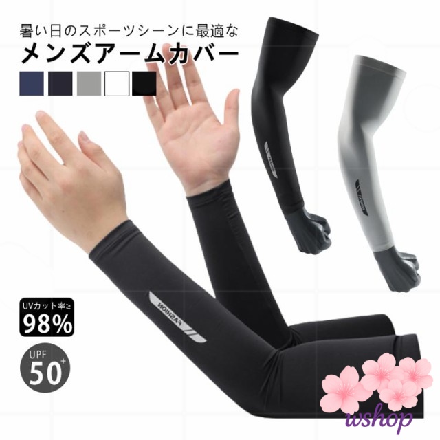 【wshop】UV 2組セット UVカット 接触冷感 ストレッチ 自転車 アームカバー 男用 冷感アームカバー 2組セット スポーツ 大きいサイズ 滑り止め 伸縮性 野球 フィット感 アウトドア ゴルフ 日焼け対策 吸汗速乾 メンズ 通気性 ズレ落ち防止 ロング 紫外線対策 アームカバー