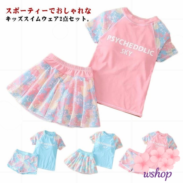 話題商品 レビュー高評価 ショーツ 水着 上下セット ジュニア水着 キッズ水着 100-150cm ラッシュガード ガールズ 水陸両用 子供水着 スカート セパレート ビーチ インナーパンツ付き 小学生 スクール水着 【wshop】海 2点セット フィットネス水着 在庫わずか