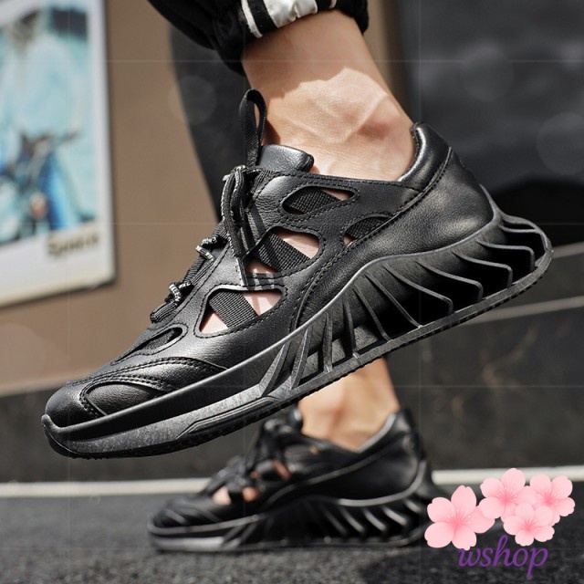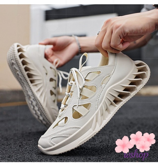 【wshop】かっこいい 軽量 厚底 カジュアル 通気性 スポーツ レースアップ メンズ おしゃれ スニーカーサンダル スポーツサンダル サンダル アウトドア 靴紐 ローカット