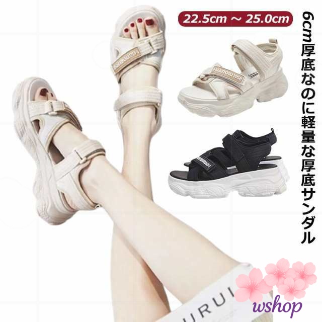 | 【 22.5cm ? 25.0cm 】 【6cm厚底なのに軽量な厚底サンダル】 中敷を使用しているので、疲れにくく使いやすいサンダル マジックテープ仕様で、着脱が簡単 約6cmのあるソールは足をすらっと細く見せ、美脚&足長を実現 プールや遊園地・テーマパークなど、外で思い切り遊ぶ春夏レジャーや海外旅行は、この歩きやすいハイヒールサンダル | |