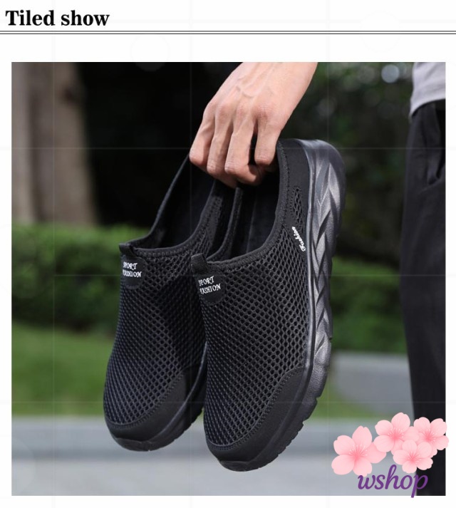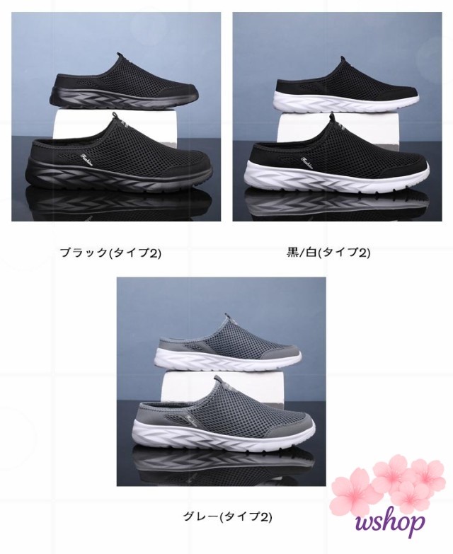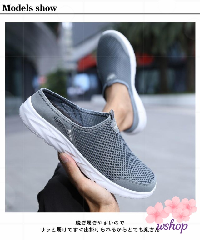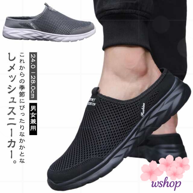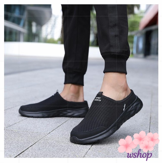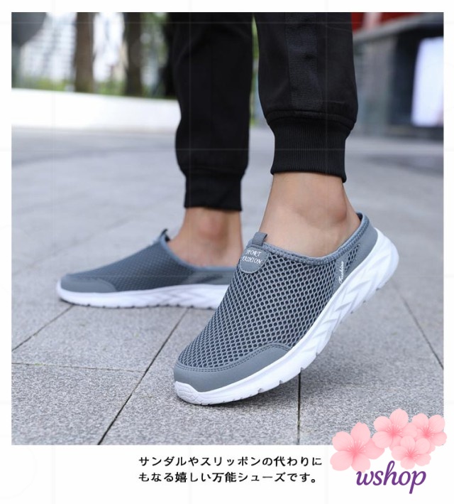 【wshop】スリッポン スリッパ 部屋履き メッシュスニーカー 軽量 靴 夏 かかとなしスニーカー シューズ メンズ かかとなしシューズ ベランダー履き サボサンダル 軽い サンダル スニーカーサンダル かかとなしスニーカー かかとなし 春 通気性 防滑 外履き メッシュサンダル