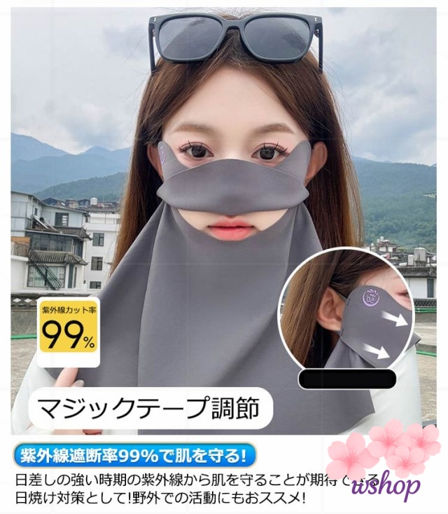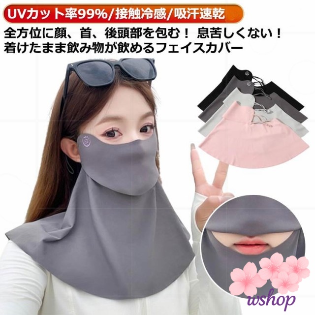 【wshop】フェイスガード UPF50+ 自転車 メンズ ネックガード フェイスカバー 接触冷感 レディース 釣り マジックテープ調節 uv 息苦しくない テニス 登山 アウトドア 洗えるマスク ネックカバー uv 夏 濃い灰 uvカット 農作業 浅い灰 ピンク ゴルフ スポーツ 通気性