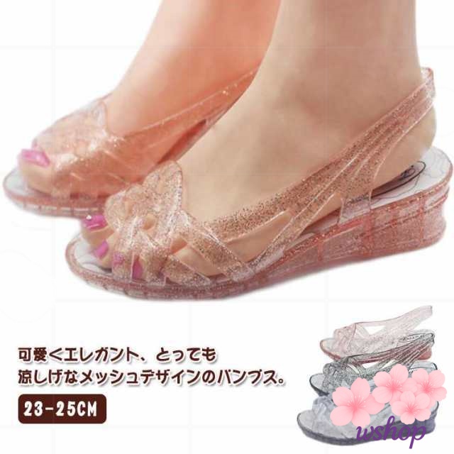 【wshop】通勤 オフィス パンプス 婦人靴 通気 ビーチサンダル 夏 レイン 軽量 メッシュパンプス 晴雨兼用 レインシューズ ママシューズ ローヒール メッシュ 雨 レディース 梅雨 痛くない 履きやすい 蒸れない 夏 ラバーサンダル スリッポン ラバーシューズ きらきら
