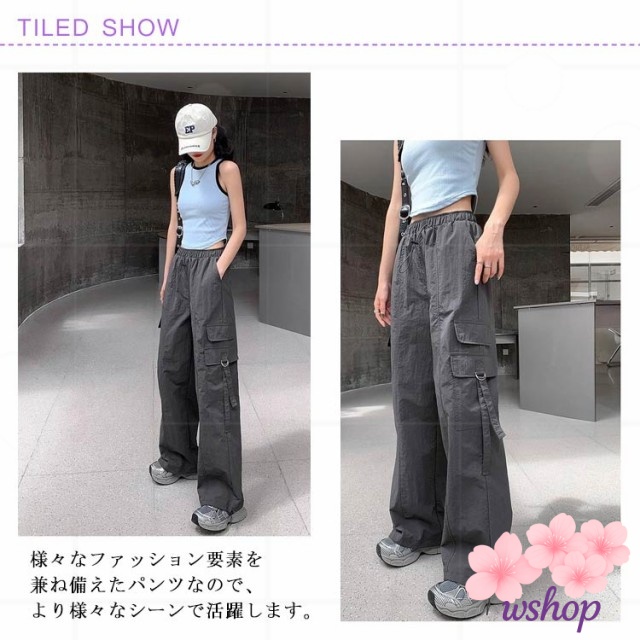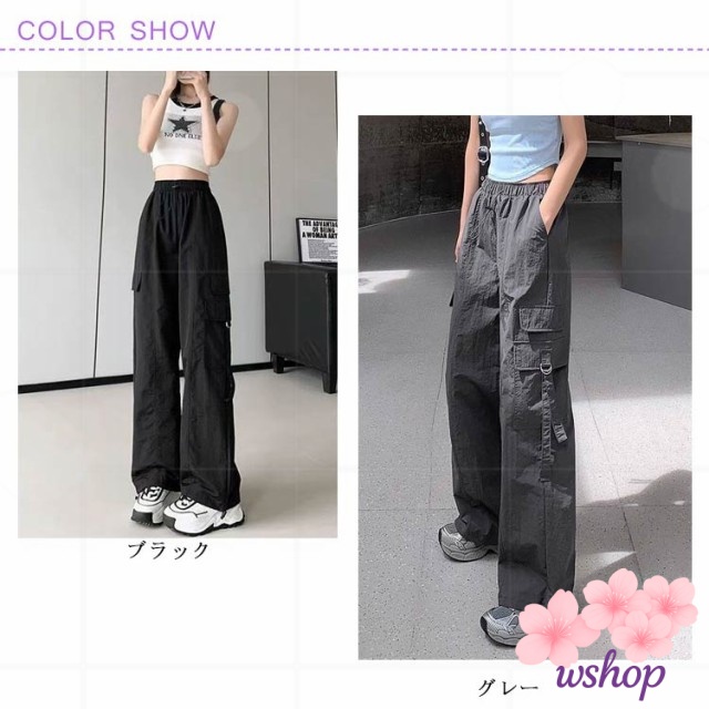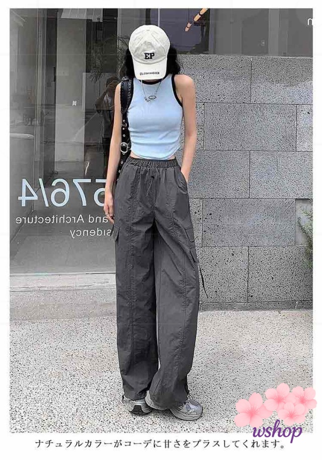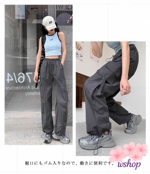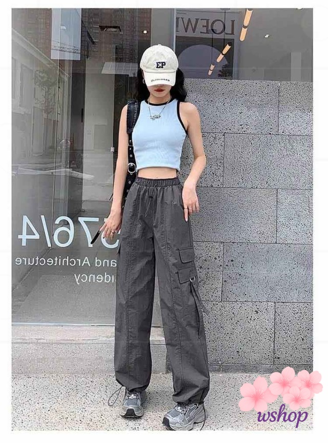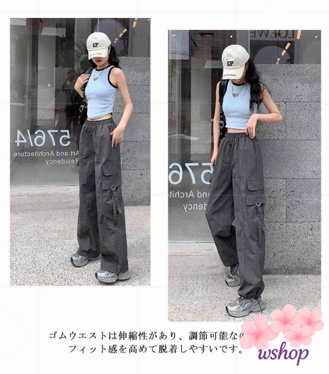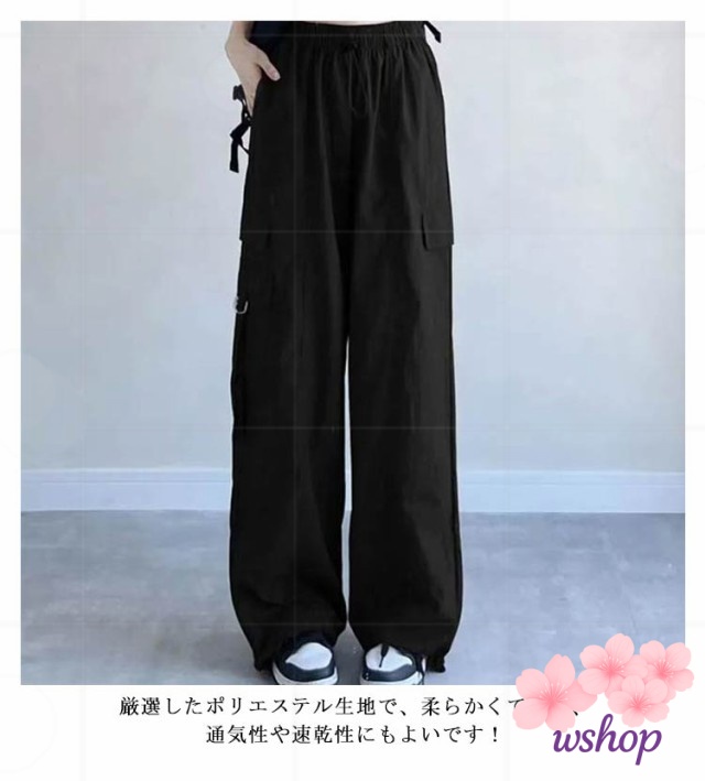 【wshop】パンツ ワイド ウエストゴム カジュアル かっこいい ズボン 動きやすい 春夏秋 女性用 薄手 カーゴパンツ 無地 シンプル カーゴパンツ 作業着 ダンス用 ゆったり ジョガーパンツ レディース