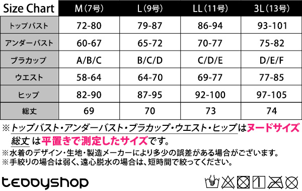 ※トップバスト・アンダーバスト・ブラカップ・ウエスト・ヒップはヌードサイズ、