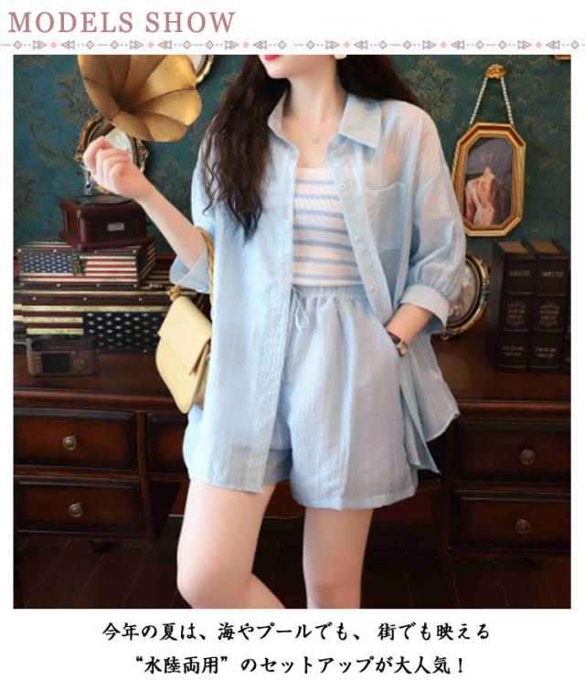 シャツ 上下セット ラッシュガード トップス セットアップ オーバーシャツ 日焼け防止 長袖 ラッシュガード UVケア オーバーシャツ 紫外線対策 UV対策 ストライプ 羽織り ママ水着 服見え 体型カバー お洒落