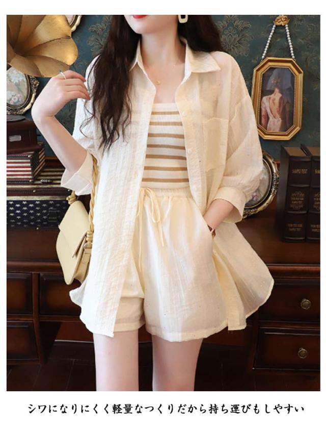 | 着るだけでこなれ感。大人の“服見え”ラッシュガードセット 今年の夏は、海やプールでも、 街でも映える“水陸両用”のセットアップが大人気! 【長袖シャツ+ショートパンツ】のラッシュガード2点セット。 ショートパンツは穿きやすいウエストゴム仕様。 汗をかいても乾きやすい吸水速乾機能で快適な着心地を継続。 縦横、四方に伸びる伸縮性にも優れ動きやすい。 シワになりにくく軽量なつくりだから持ち運びもしやすい まるで普通のシャツ&ショーパンのような服見えデザインで、 ビーチだけでなく街歩き・カフェ・旅行先でも違和感なく着こなせるアイテムです | |