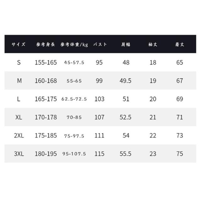 | サイズ | S M L XL 2XL 3XL |