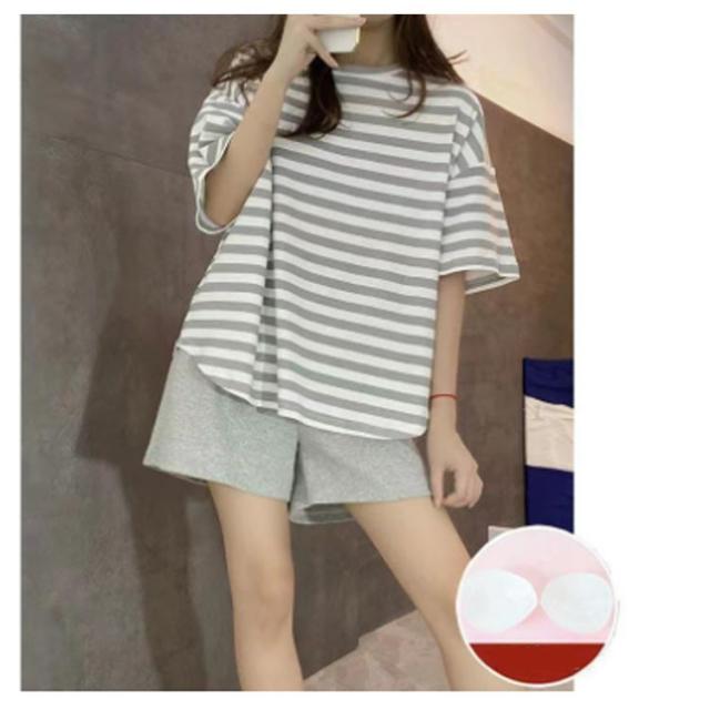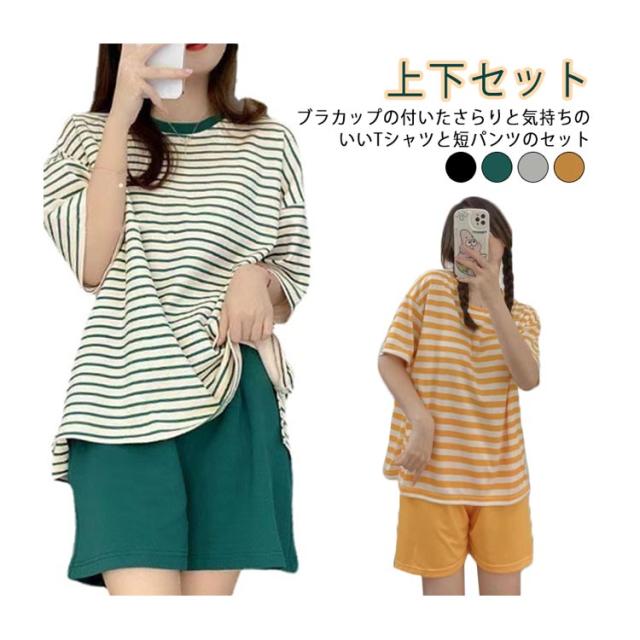 夏用パジャマ 上下セット 夏パジャマ 夏 産後 パジャマ 大きいサイズ カップ付き 大人用 かわいい ルームウェア 可愛いパジャマ 半袖 春 部屋着 丸首 カップ付き パッド付き 半袖パジャマ 入院 ストラップ ボーター かぶるだけ ゆったり 部屋着 母の日