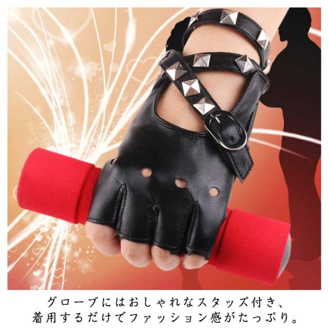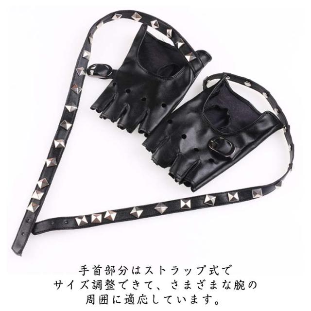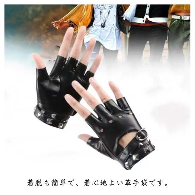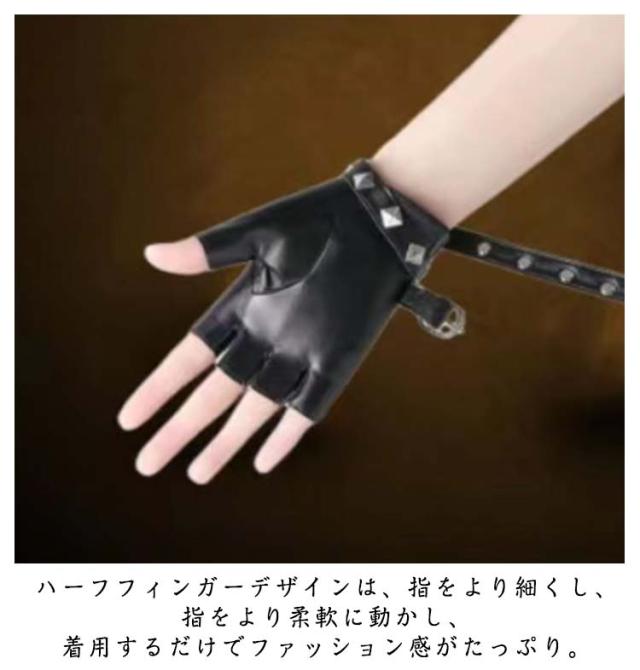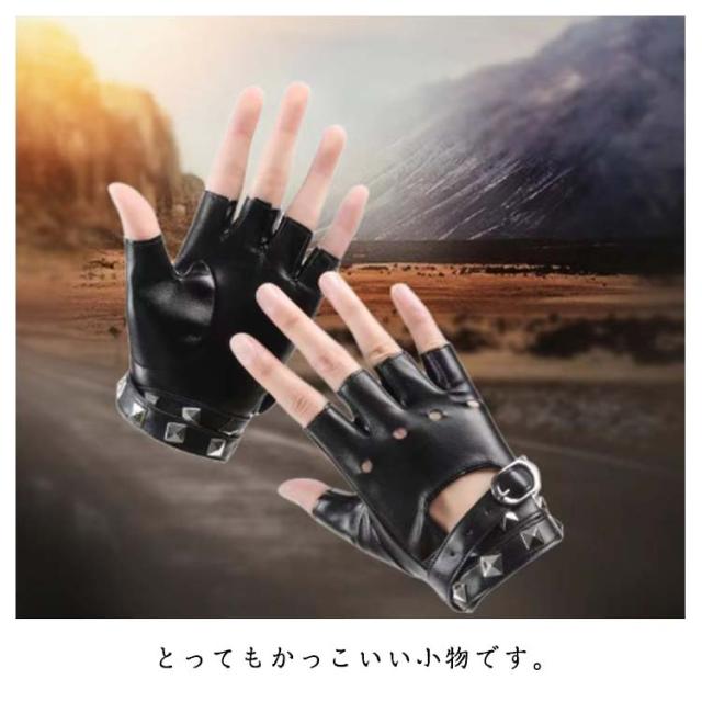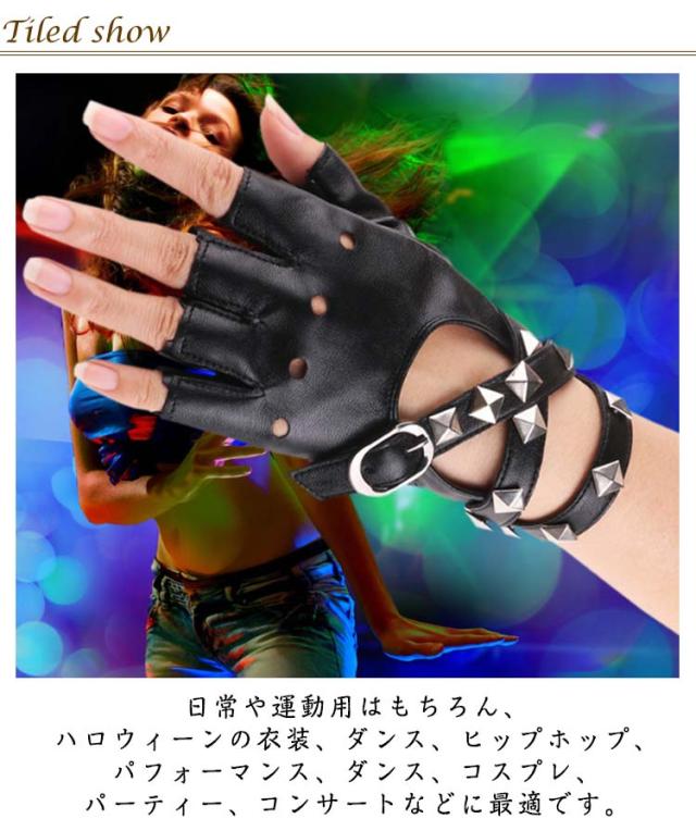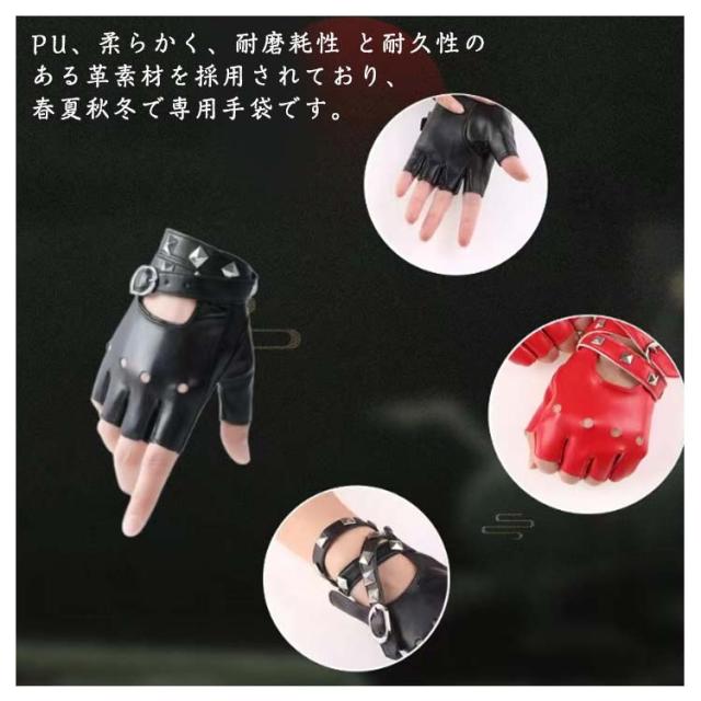 | ハーフフィンガー・ストラップデザイン とってもかっこいい小物です。 PU、柔らかく、耐磨耗性 と耐久性のある革素材を採用されており、春夏秋冬で専用手袋です。 ハーフフィンガーデザインは、指をより細くし、指をより柔軟に動かし、着用するだけでファッション感がたっぷり。 手首部分はストラップ式でサイズ調整できて、さまざまな腕の周囲に適応しています。 グローブにはおしゃれなスタッズ付き、着用するだけでファッション感がたっぷり。 着脱も簡単で、着心地よい革手袋です。 日常や運動用はもちろん、ハロウィーンの衣装、ダンス、ヒップホップ、パフォーマンス、ダンス、コスプレ、パーティー、コンサートなどに最適です。 | |