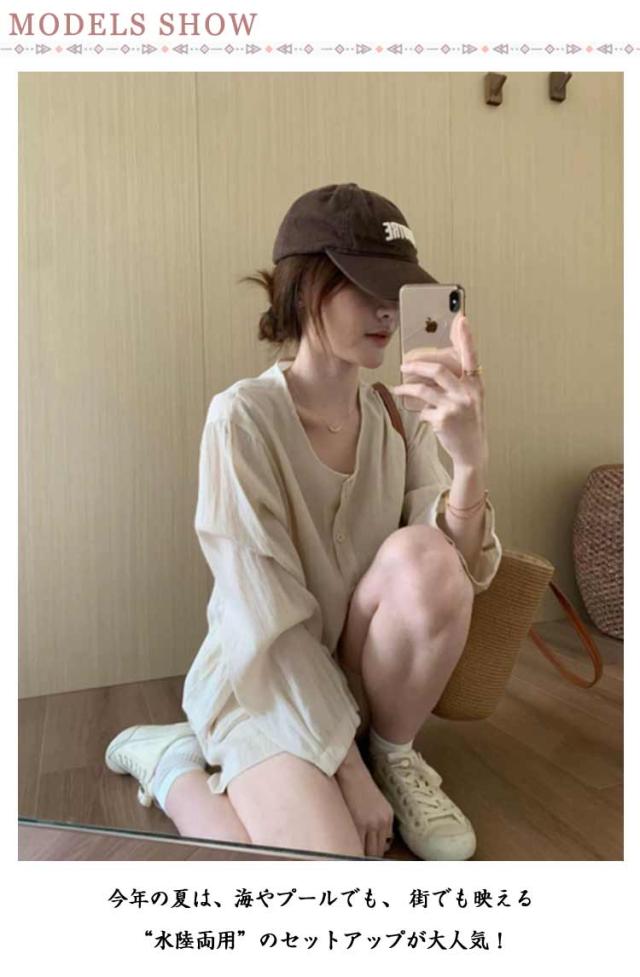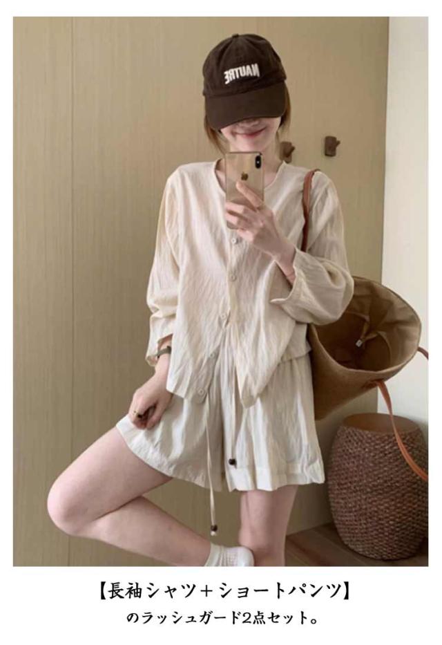 | 着るだけでこなれ感。大人の“服見え”ラッシュガードセット 今年の夏は、海やプールでも、 街でも映える“水陸両用”のセットアップが大人気! 【長袖シャツ+ショートパンツ】のラッシュガード2点セット。 ショートパンツは穿きやすいウエストゴム仕様。 汗をかいても乾きやすい吸水速乾機能で快適な着心地を継続。 縦横、四方に伸びる伸縮性にも優れ動きやすい。 シワになりにくく軽量なつくりだから持ち運びもしやすい まるで普通のシャツ&ショーパンのような服見えデザインで、 ビーチだけでなく街歩き・カフェ・旅行先でも違和感なく着こなせるアイテムです | |