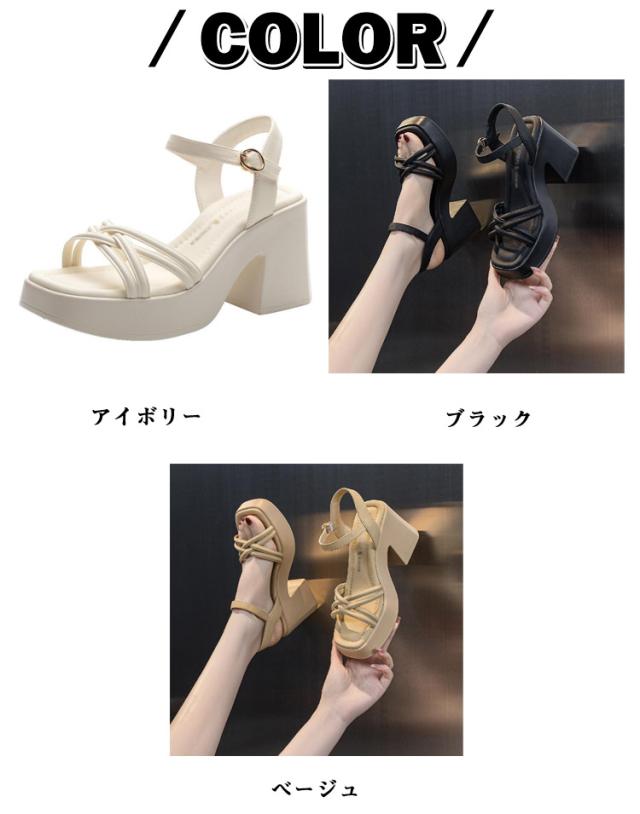 7cm サンダル オフィス サンダル ブラック 太ヒール 痛くない 脚長 黒 スクエアトゥ ベージュ アンクルストラップ チャンキーヒール 通勤 春夏 歩きやすい 美脚 ハイヒール 身長アップ アイボリー レディース シューズ カジュアル かわいい ストラップサンダル