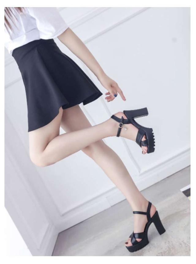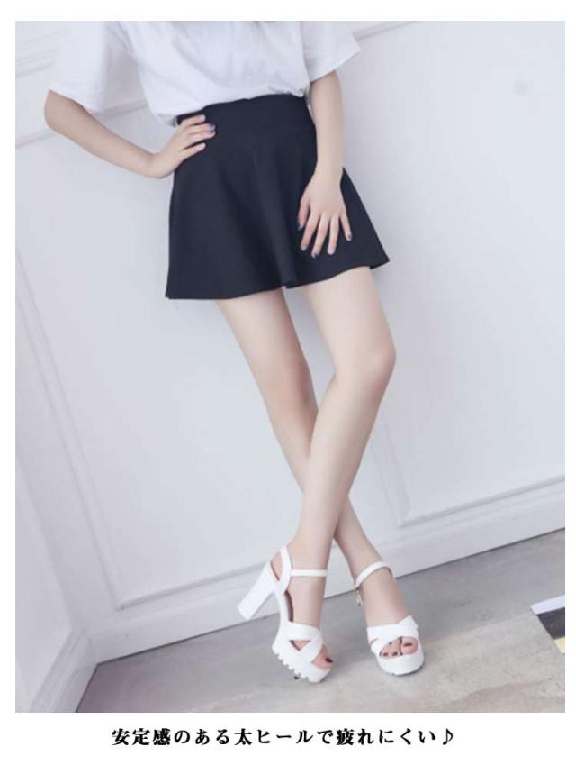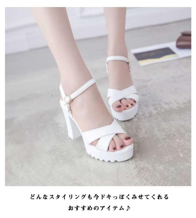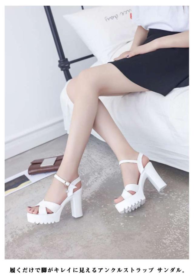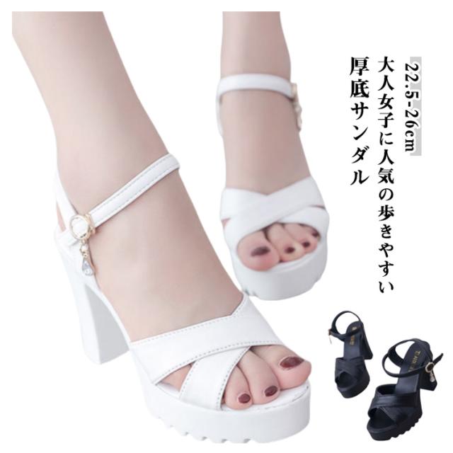 小さいサイズ アンクルストラップ 厚底サンダル 太ヒール オープントゥ チャンキーヒール サンダル レディース ストラップサンダル 美脚 厚底 サンダル ストラップ 送料無料 夏 大きいサイズ ヒール10cm 歩きやすい おしゃれ ブラック ホワイト 黒