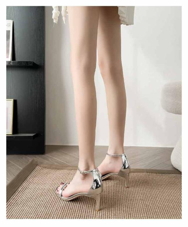 サンダル 10cmヒール アンクルストラップ ハイヒール サンダル レディース エナメル ピンヒール 痛くない 小さいサイズ 合成皮革 ワンストラップ 8cm おしゃれ 黒 大きいサイズ 美脚 光沢 21.5cm-25.0cm 6cm ベージュ シルバー ブラック