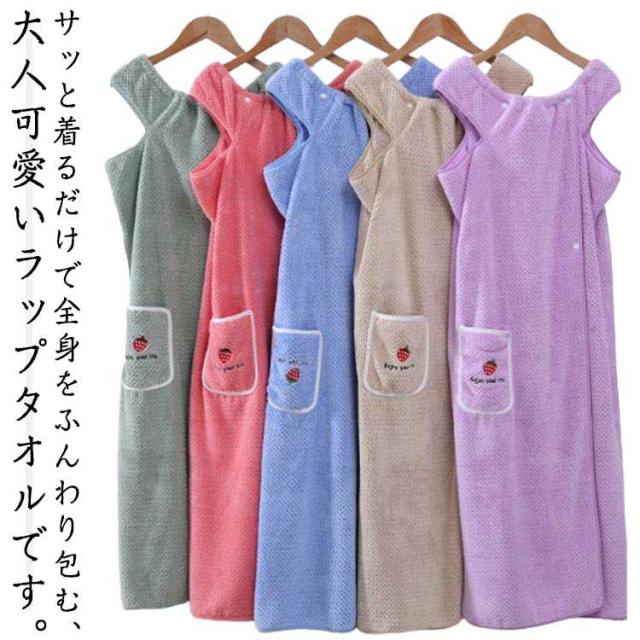 | サッと着るだけで全身をふんわり包む、大人可愛いラップタオルです。 ふわふわのマイクロファイバーで濡れた体をしっかり吸水し、乾きやすいからお手入れも簡単。 体型を選ばずゆったり着られる大判サイズで気になる部分も優しく包み込みます。 ポケットが付き、スマホやちょっとした小物などを入れられます、とても便利です。 お風呂上がりだけではなく、プールや温泉、スポーツジム、サウナなどでも大活躍します。 | |