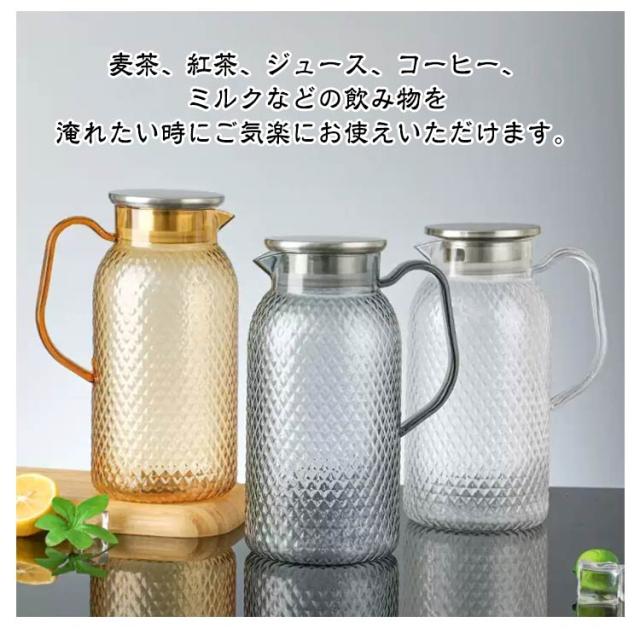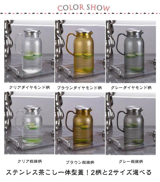 | ステンレス茶こし一体型蓋!2柄と2サイズ選べる ボトルの口径が大きく、手が直接差し込めて清潔できます 麦茶、紅茶、ジュース、コーヒー、ミルクなどの飲み物を淹れたい時にご気楽にお使えいただけます。 -20℃〜120℃、耐熱ガラスので、温かい飲み物にも冷たい飲み物にも使える耐熱ガラス製のピッチャーです。 | |