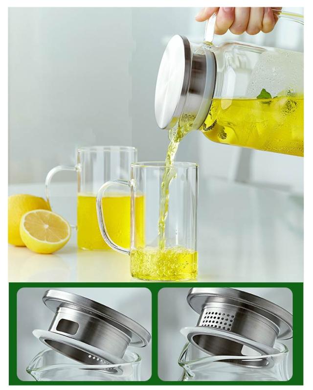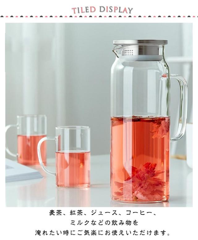 | ステンレス茶こし一体型蓋!二つコップ付き ボトルの口径が大きく、手が直接差し込めて清潔できます 麦茶、紅茶、ジュース、コーヒー、ミルクなどの飲み物を淹れたい時にご気楽にお使えいただけます。 耐熱ガラスので、温かい飲み物にも冷たい飲み物にも使える耐熱ガラス製のピッチャーです。 | |