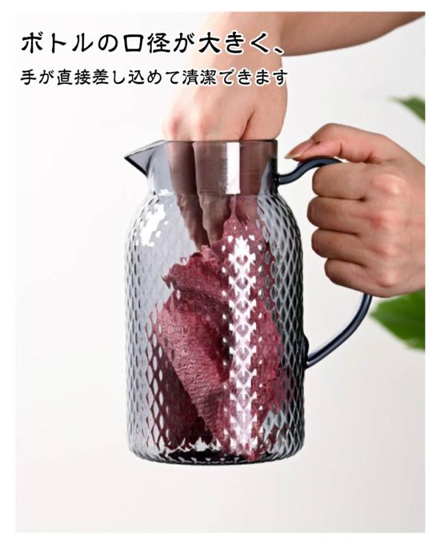 | ステンレス茶こし一体型蓋!2柄と2サイズ選べる ボトルの口径が大きく、手が直接差し込めて清潔できます 麦茶、紅茶、ジュース、コーヒー、ミルクなどの飲み物を淹れたい時にご気楽にお使えいただけます。 -20℃〜120℃、耐熱ガラスので、温かい飲み物にも冷たい飲み物にも使える耐熱ガラス製のピッチャーです。 | |