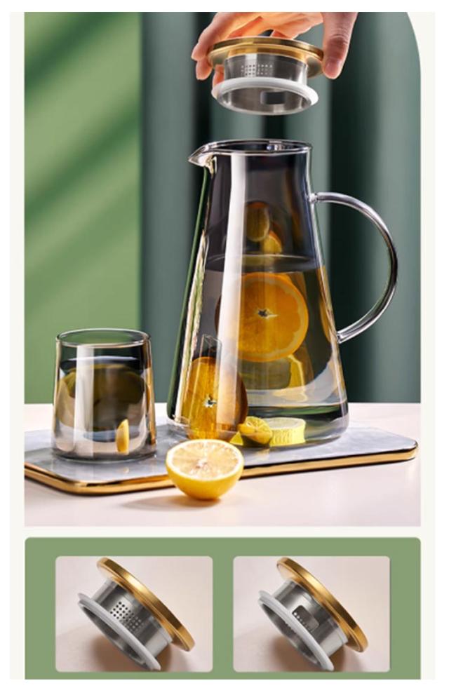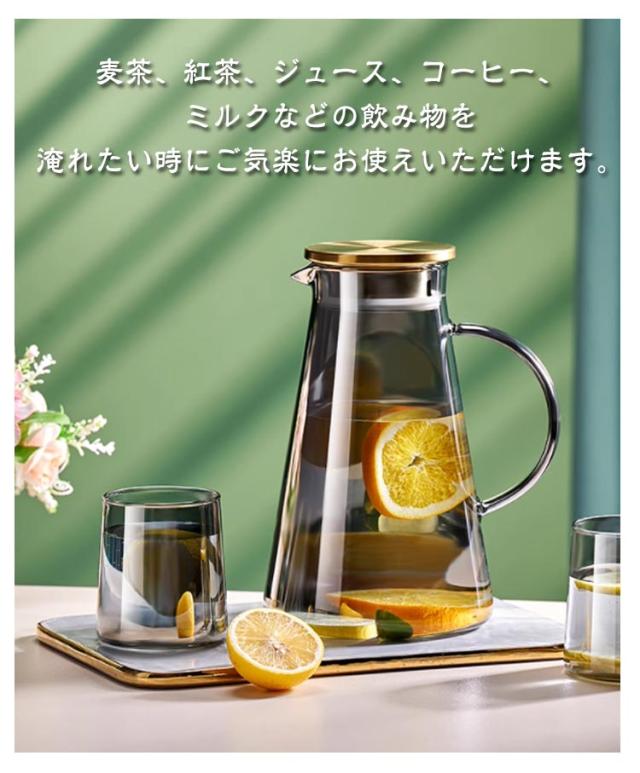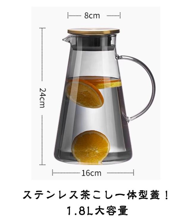 | ステンレス茶こし一体型蓋!1.8L大容量 ボトルの口径が大きく、手が直接差し込めて清潔できます 麦茶、紅茶、ジュース、コーヒー、ミルクなどの飲み物を淹れたい時にご気楽にお使えいただけます。 耐熱ガラスので、温かい飲み物にも冷たい飲み物にも使える耐熱ガラス製のピッチャーです。 | |