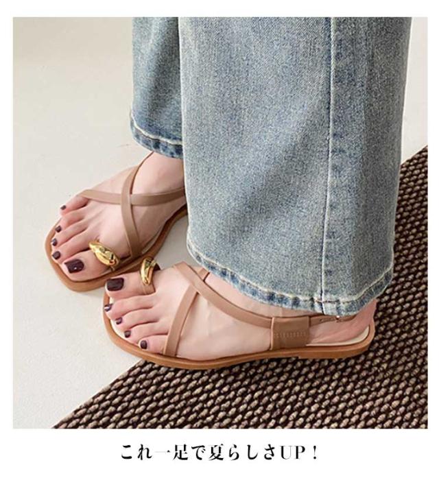 ローヒール シューズ トングサンダル 靴 大きいサイズ 歩きやすい スクエアトゥ レディース トングサンダル ぺたんこ 夏 柔らかい おしゃれ ビーチサンダル フラット リングサンダル 滑り止め カジュアル きれいめ オフィス