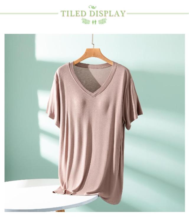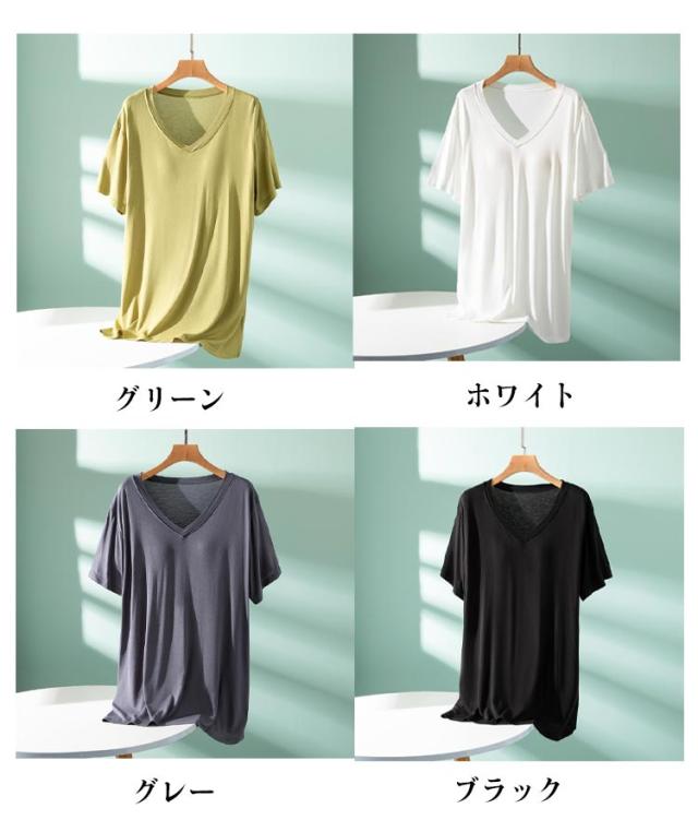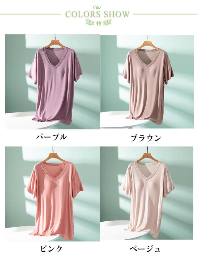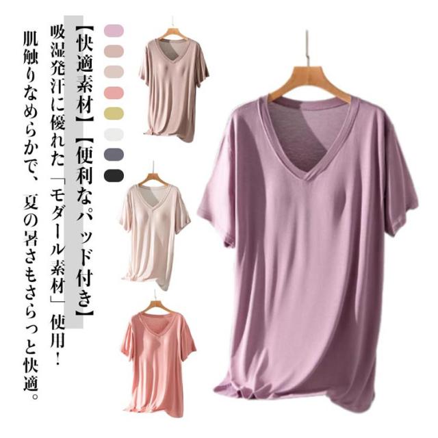 カップ付きインナートップス カップ付き レディース ルームウェア 半袖Tシャツ カップ付きTシャツ ブラトップ 無地 vネック ラウンドネック 柔らかい tシャツ アンダーフリー 大きいサイズ パット付き カップ付きインナートップス 締め付けない ナイトブラ