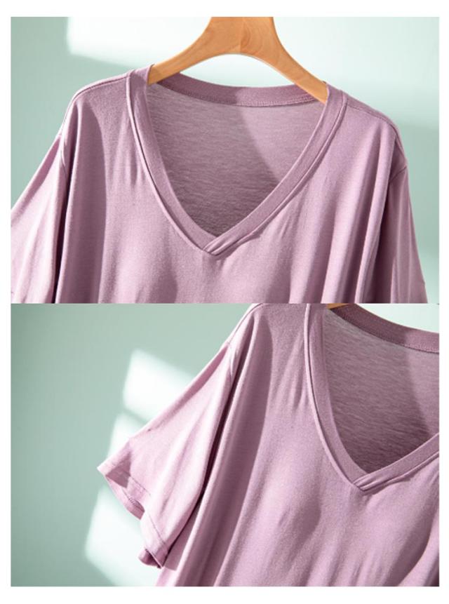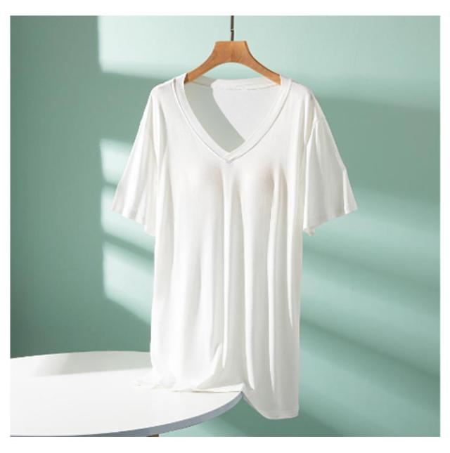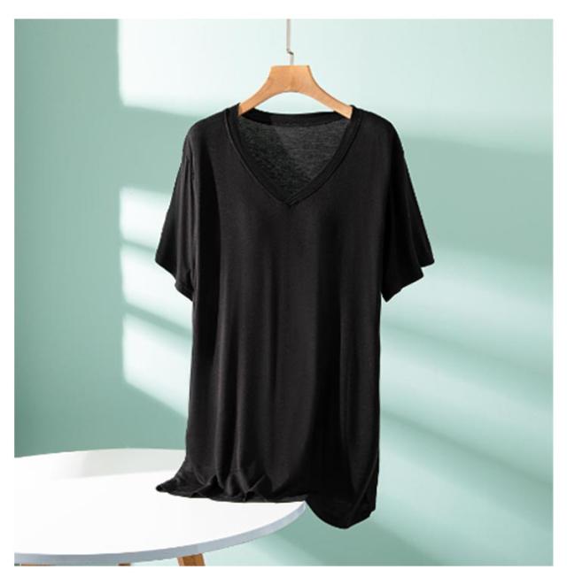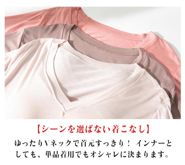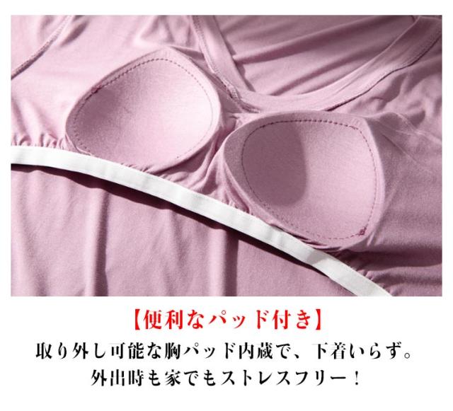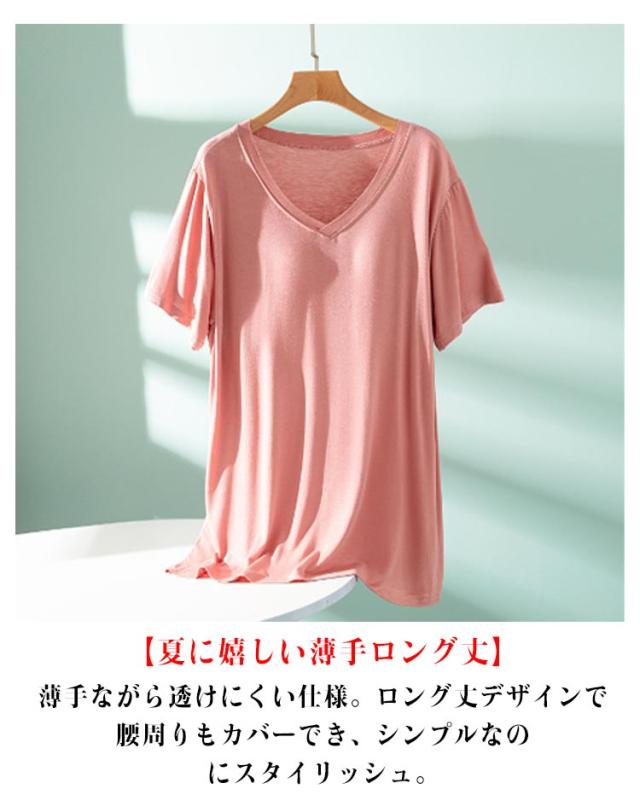 | 【快適素材】 吸湿発汗に優れた「モダール素材」使用! 肌触りなめらかで、夏の暑さもさらっと快適。 【便利なパッド付き】 取り外し可能な胸パッド内蔵で、下着いらず。外出時も家でもストレスフリー! 【夏に嬉しい薄手ロング丈】 薄手ながら透けにくい仕様。ロング丈デザインで腰周りもカバーでき、シンプルなのにスタイリッシュ。 【シーンを選ばない着こなし】 ゆったりVネックで首元すっきり! インナーとしても、単品着用でもオシャレに決まります。 | |