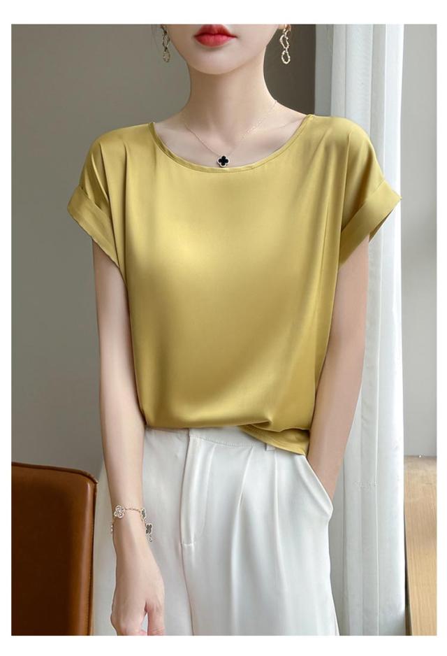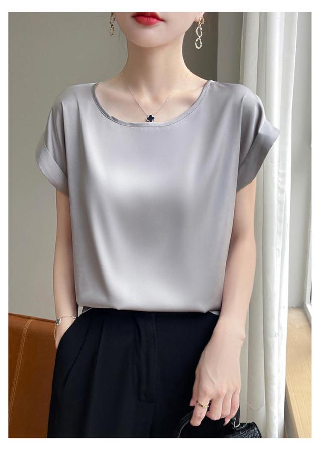 オフィス 高級感 薄手 シンプル レディース 夏 半袖 ブラウス 仕事 春夏 通勤 おしゃれ 涼しい かわいい カジュアル トップス 体型カバー ラウンドネック 無地 入学式 大きいサイズ ゆったり プルオーバー プレゼント 普段着 通勤 ギフト ブラウス 20代 30代 40代