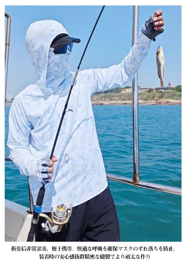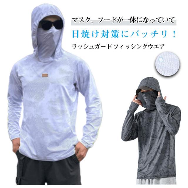 | マスク、フードが一体になっていて、日焼け対策にバッチリ! ラッシュガード フィッシングウエア。 紫外線が強く真夏には欠かせないUV対策パーカーです。 着るだけで紫外線対策。UVカットで春から夏にかけての日焼け対策に最適。 通気性優良かつ吸水速乾素材で夏場の汗ばむ季節に快適なサラリとした肌触りのラッシュガード 呼吸できるスポーツ生地で、汗も素早く発散し、吸湿性も高く蒸れにくく、快適に着用できます。擦り傷や、害虫などからも肌を保護。 折りたためばとてもコンパクトになるので持ち歩きにも便利。 自転車やバイク、ウォーキングやジョギング、運動会運動会など長時間外にいるときにおすすめです。 首元まで紫外線を完全カット!全方位・多角度でUVプロテクト 日焼け防止マスクでより安心。快適な呼吸を確保 マスクのずれ落ちを防止。装着時の安心感抜群 精密な縫製でより頑丈な作り | |